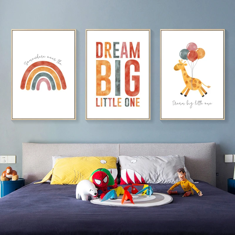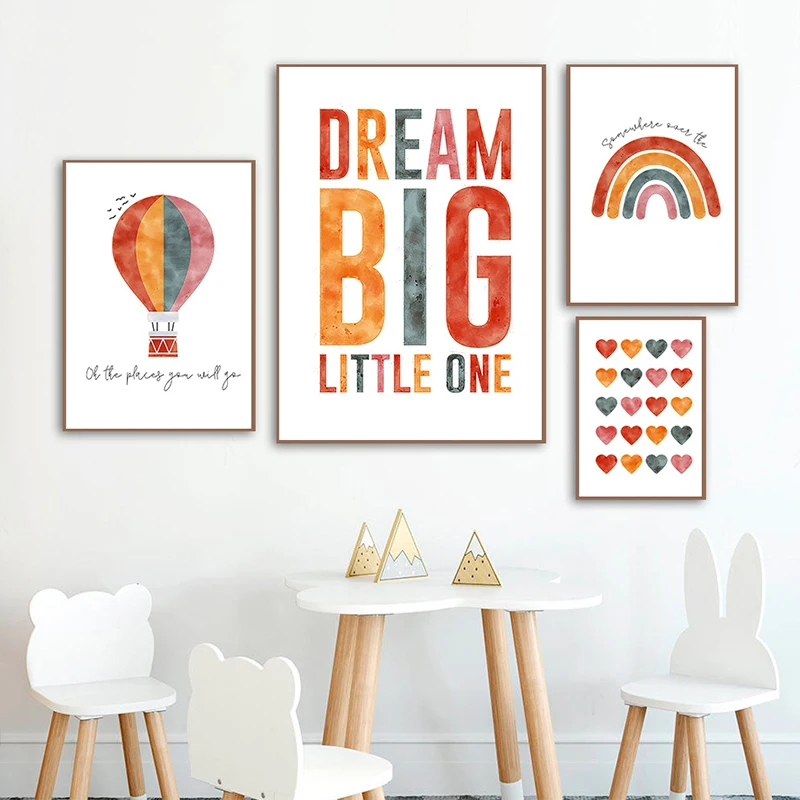 Плакаты в стиле бохо, декор детской комнаты, мультяшная Радужная мечта, большая холщовая картина для детской комнаты на лофте, картина для интерьера, детский домашний декор