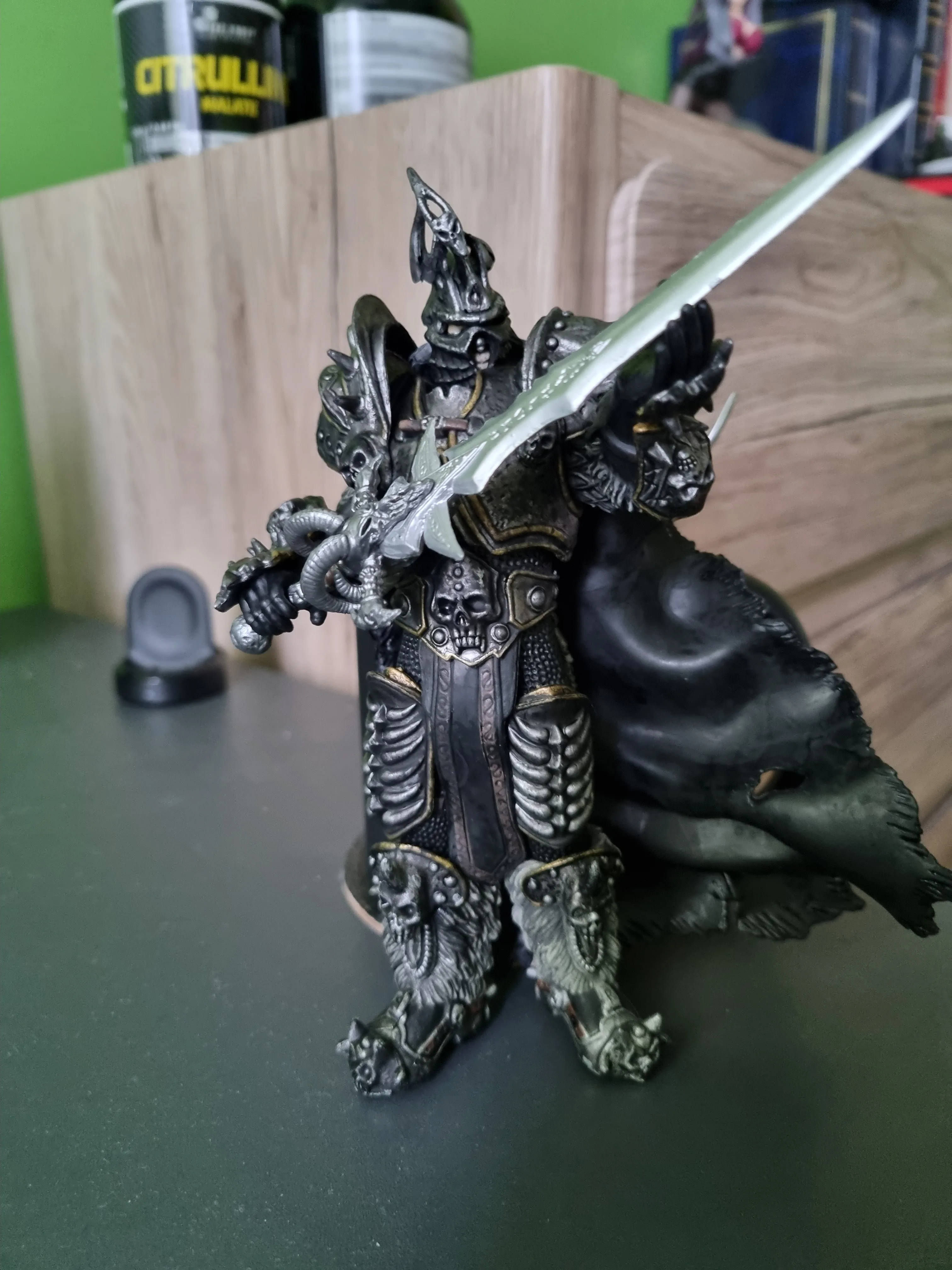 Экшн-фигурка, совместимая с описанием, Troche pokrzywiona crown, но da sie it naprostowac. Цвета и воспроизведение очень хорошие. Повреждения, без подставки, потому что ciezko Lich Kingowi ustac на месте. Рекомендуется.