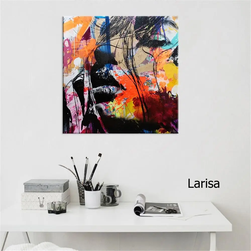 Современная Абстрактная живопись квадратная холст настенное Искусст...