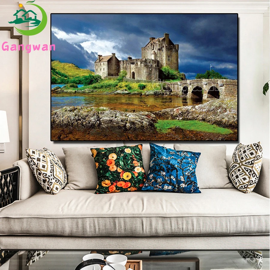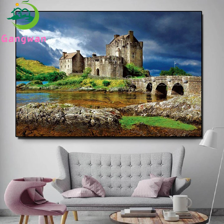 Алмазная живопись, вышивка крестиком, эйлиан Донан пейзаж с замком, 5d, алмазная вышивка, мозаика, шотландский пейзаж, подарки