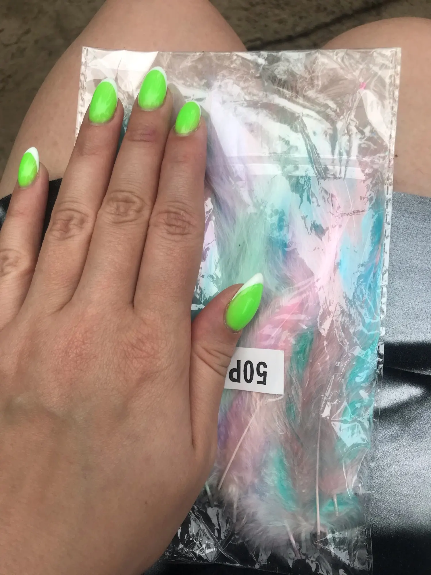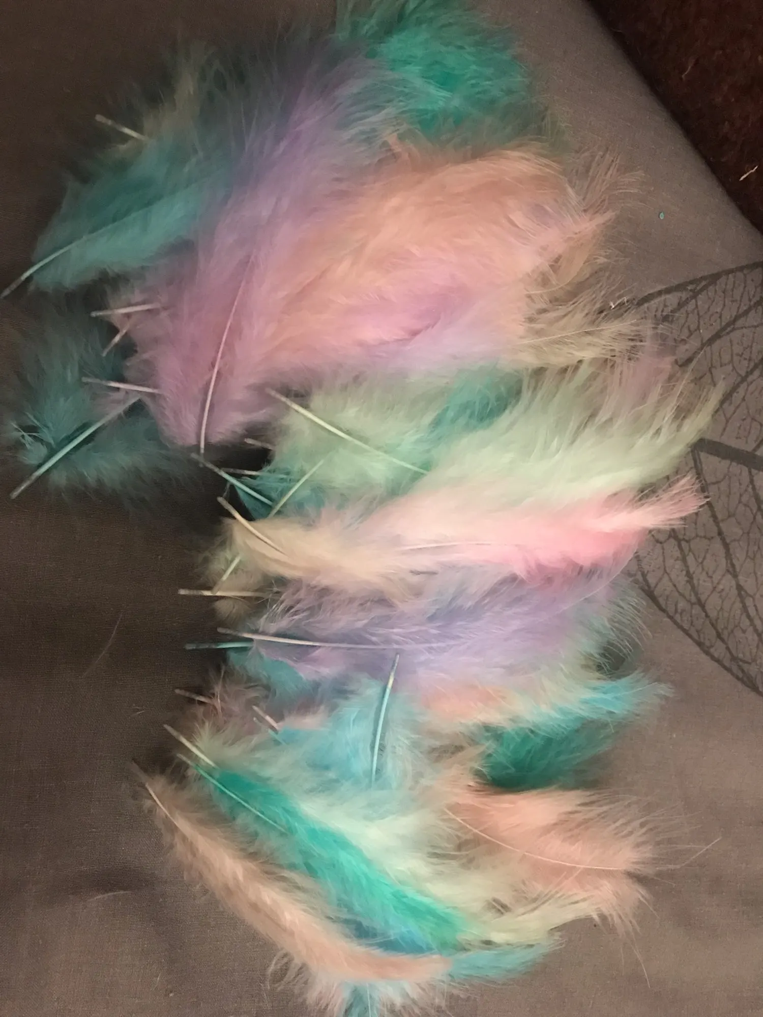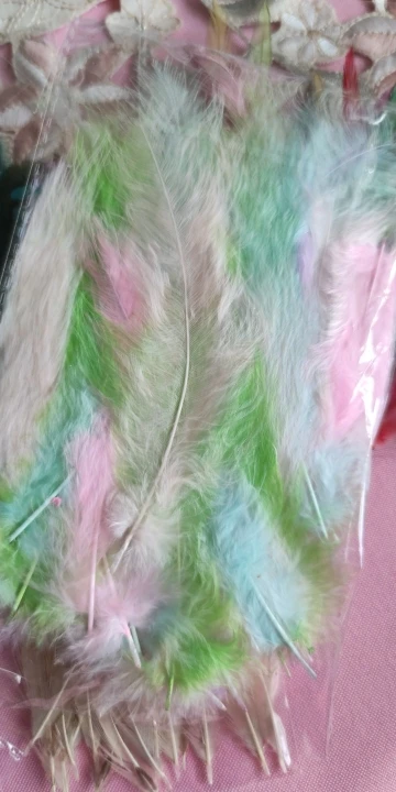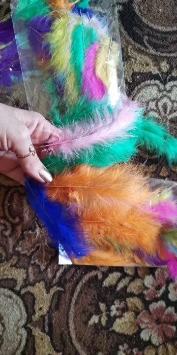 Пір'я сподобалося, кольори ніжні. Не зовсім відповідає фото продавця, але судячи з фото інших покупців їм приходили такі ж набори як в мене (без оранжевого, салатового, білого, сірого, жовтого кольорів). Товар прийшов приблизно за місяць.