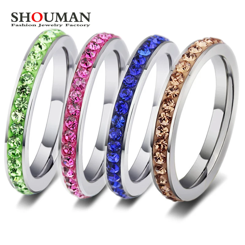 Обручальные кольца SHOUMAN для женщин, обручальные ювелирные изделия из нержавеющей стали с фианитами розового, синего, зеленого и кофейного цвета