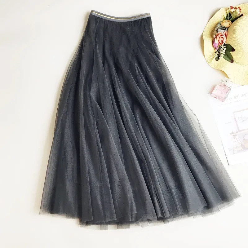 Женская Тюлевая юбка с завышенной талией, шикарная длинная юбка-пачка макси, праздничная пляжная юбка из тюля, лето однотонная плиссированная юбка