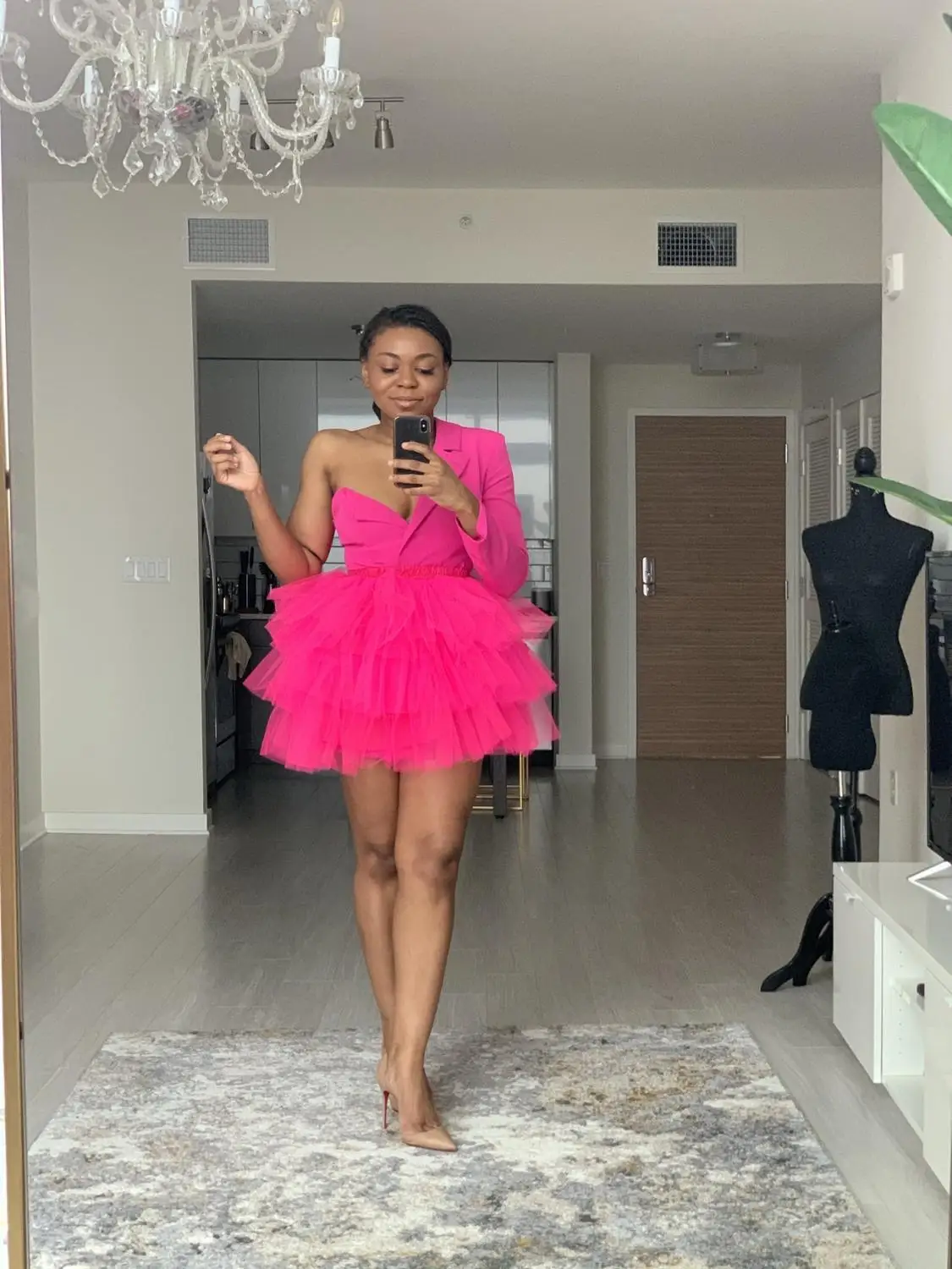 Милое ярко-розовое мини коктейльное платье 2021, модное официальное...