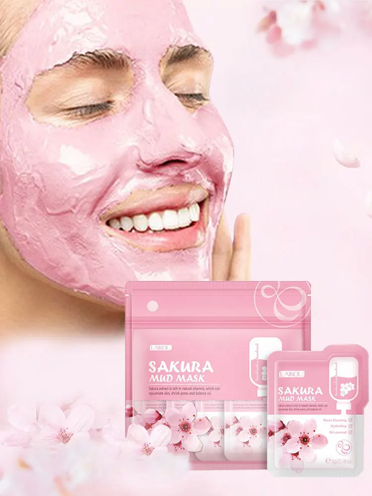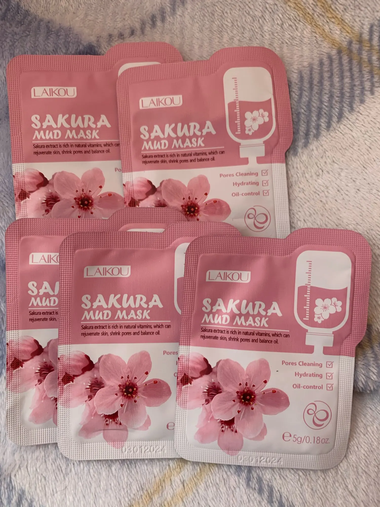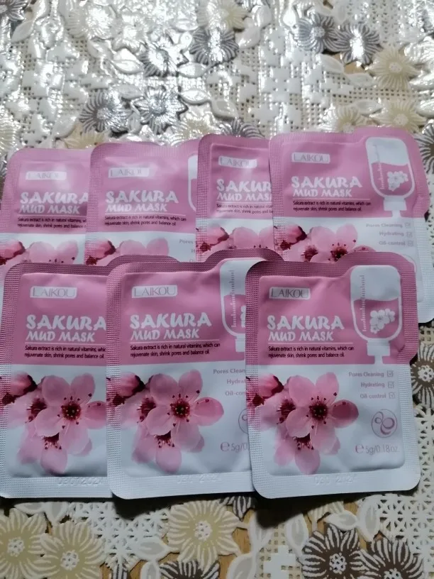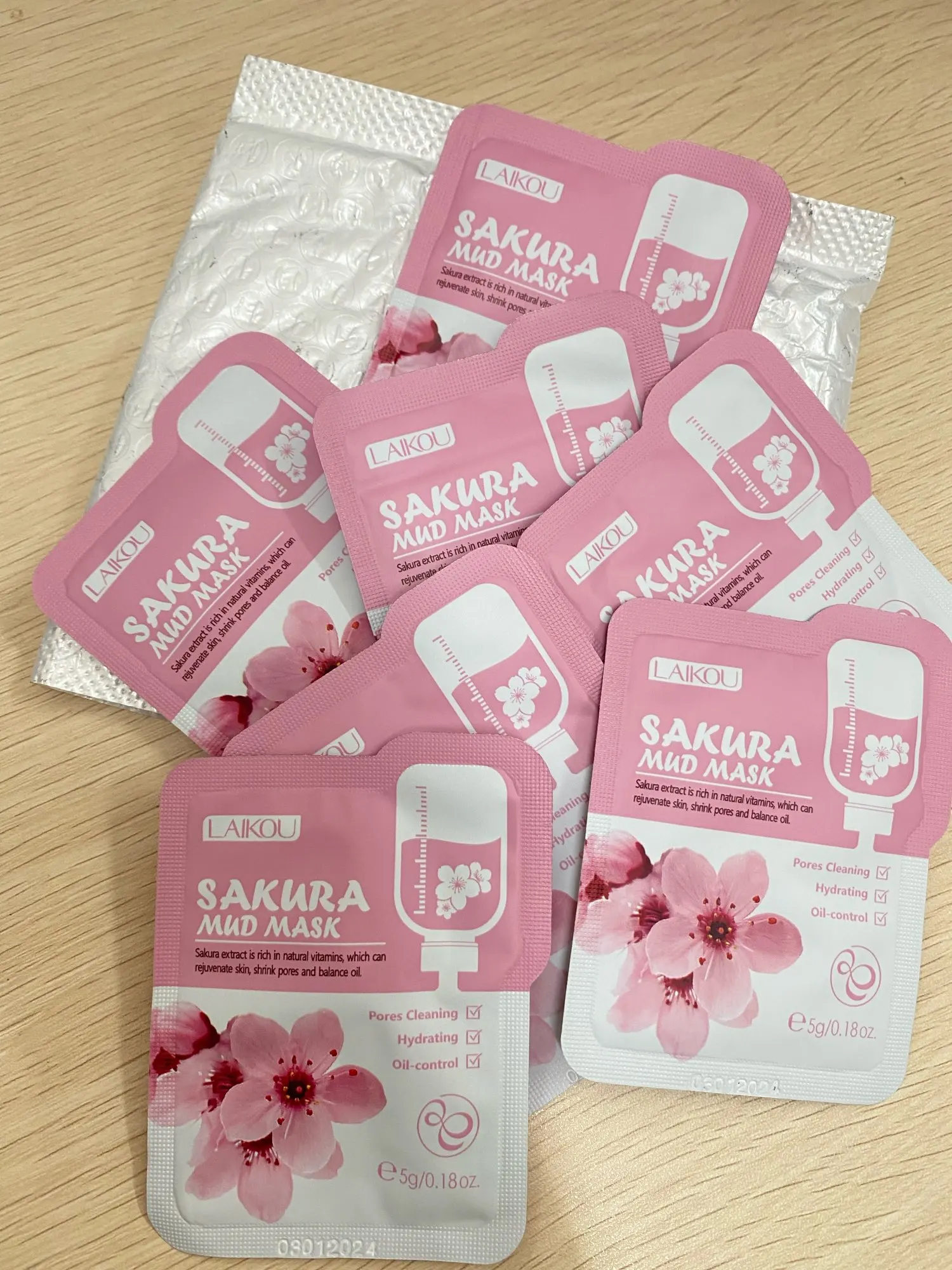 LAIKOU, 7 шт., Японская грязевая маска с сакурой, очищающая, отбеливающая, увлажняющая, масляная, антивозрастная, глиняная маска, пакеты, уход за ...