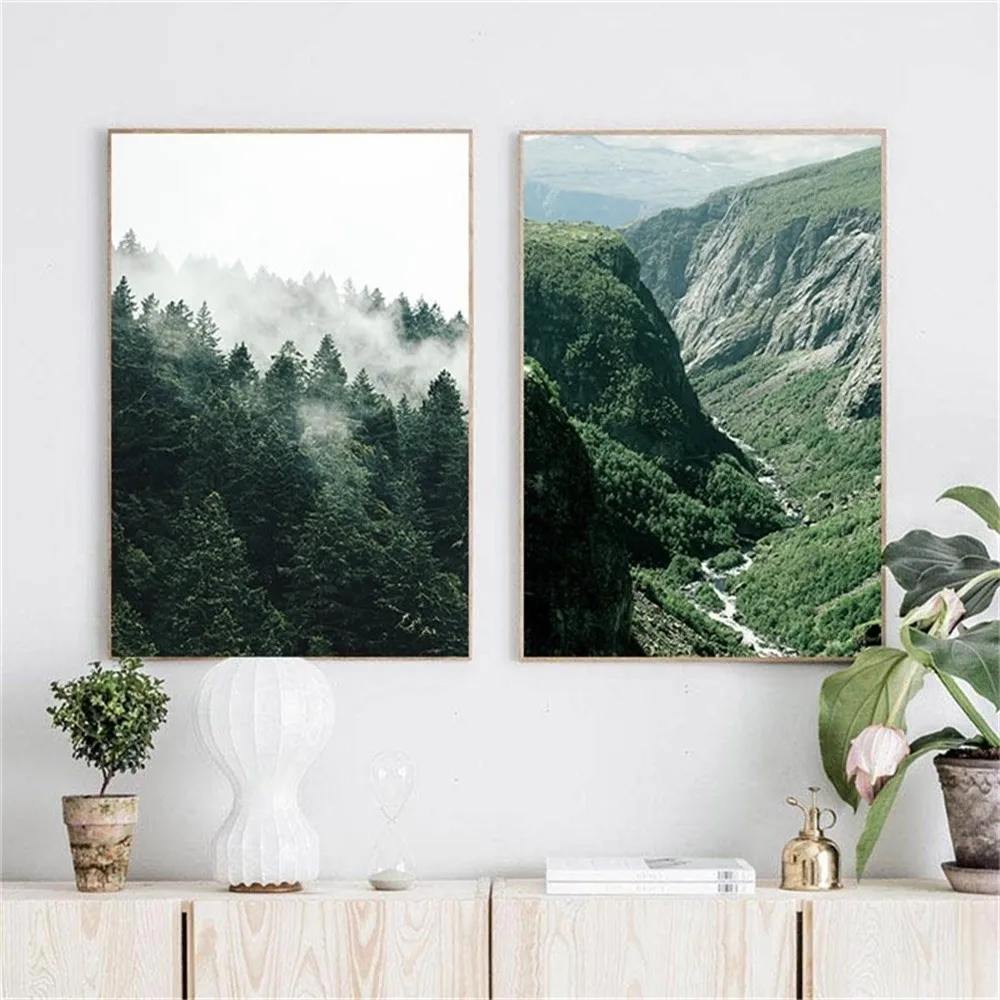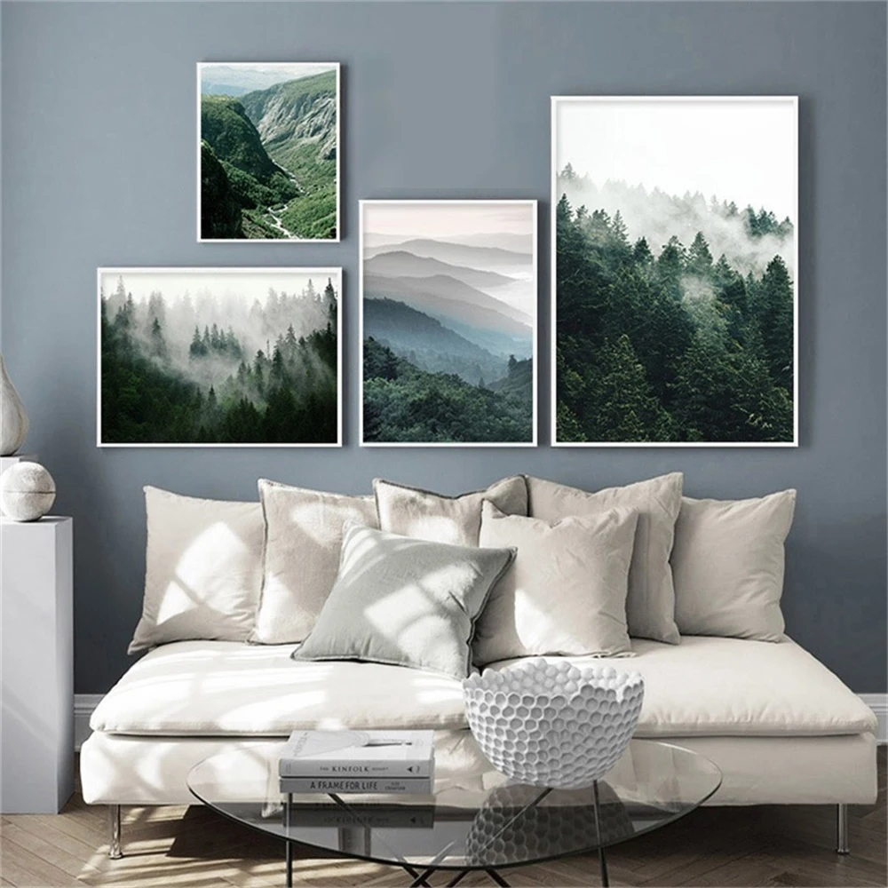 Лес горы туман Картина Пейзаж Плакат в скандинавском стиле Nordic украшения с пейзажным принтом Wall Art Краски ing холст Краски