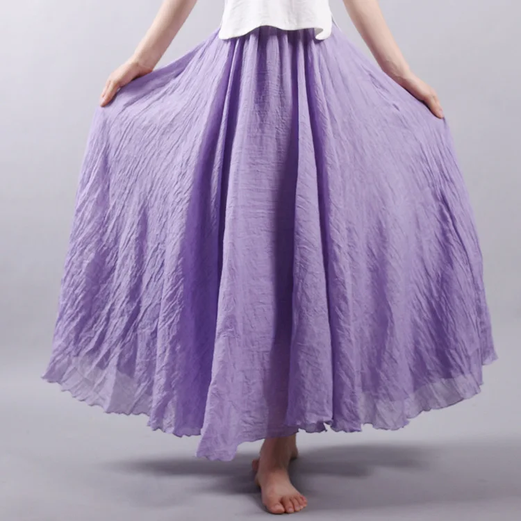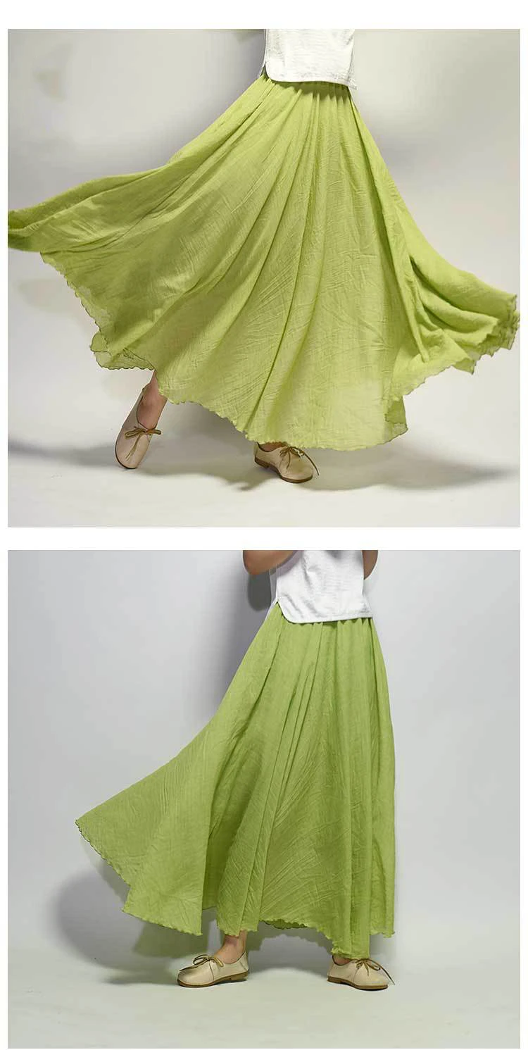 Женская льняная юбка макси, элегантная повседневная Двухслойная юбка с высокой талией и эластичным поясом, лето 2022