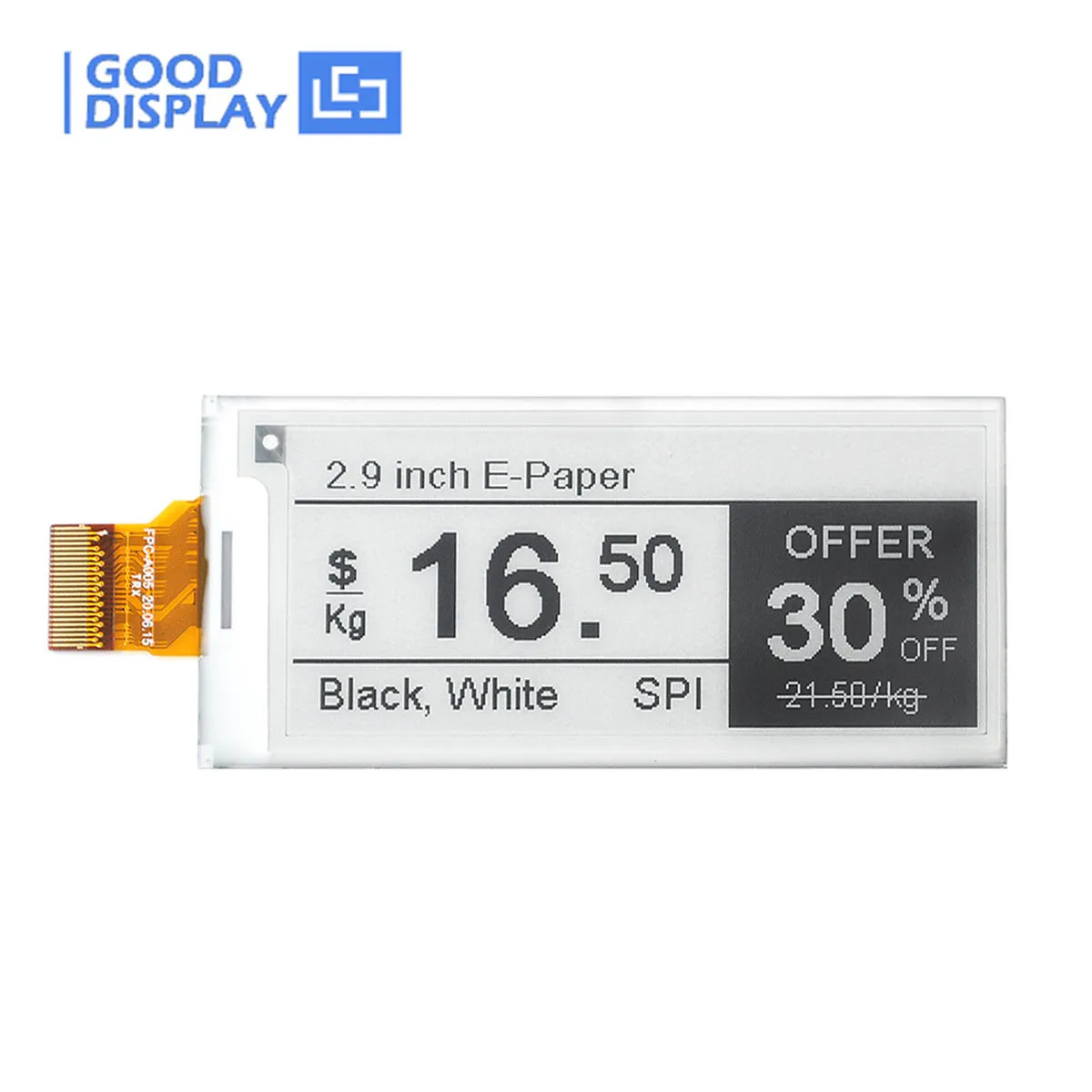 Мы можем предоставить код образца и таблицу данных: www.good-display.com/product/389.htmlИспользуйте наше бесплатное программное обеспечение для электронной бумаги, чтобы подготовить изображение растровой карты для этого дисплея