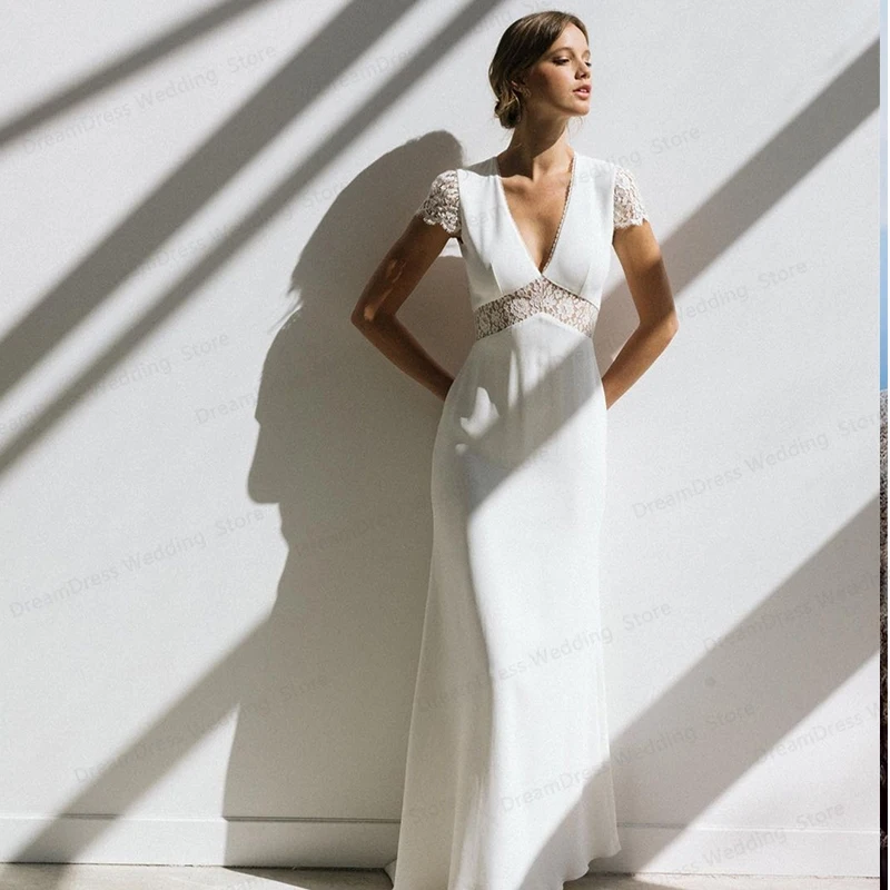 Винтажное свадебное платье в стиле бохо, с коротким рукавом, а-силуэт, с открытой спиной, кружевное, со шлейфом, потрясающее очаровательное для женщин, недорого