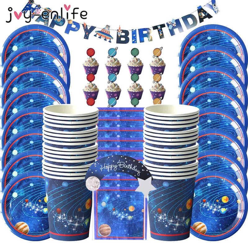 Космической галактики партия Декор набор одноразовой посуды солнечной планеты партии чашкисалфетка для детской вечеринки в честь Дня Рождения, украшения свадебные сувениры