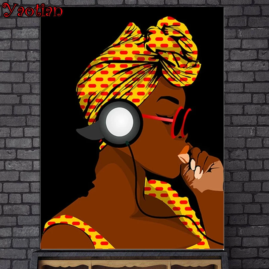 Полноразмерная алмазная живопись, Африканская женщина, 5D алмазная вышивка своими руками, вышивка крестиком, картина мозаичная живопись стразами