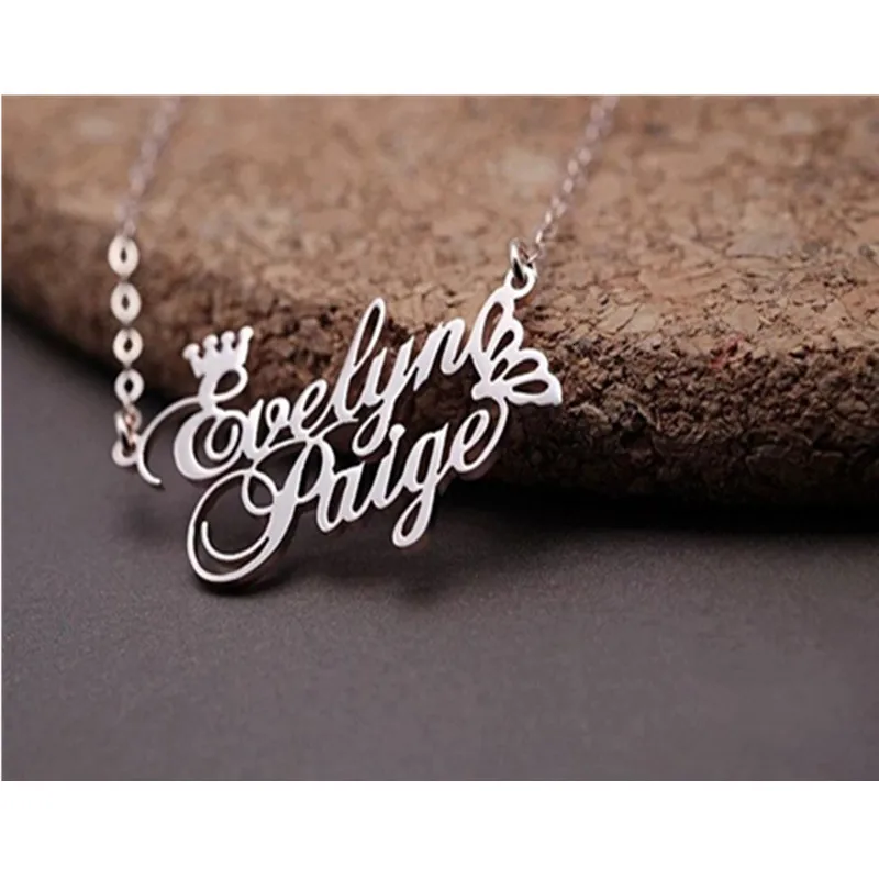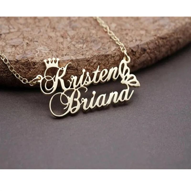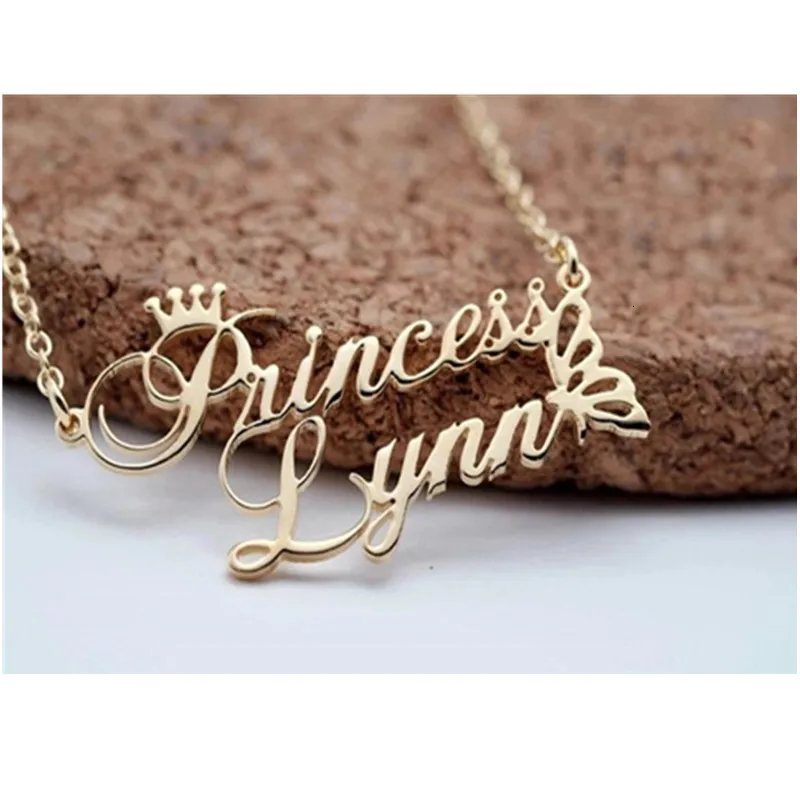 Goxijite индивидуальное ожерелье из нержавеющей стали с двойным именем и бабочкой для женщин, корона, начальная буква, ожерелье бижутерия Femme, ювелирные изделия