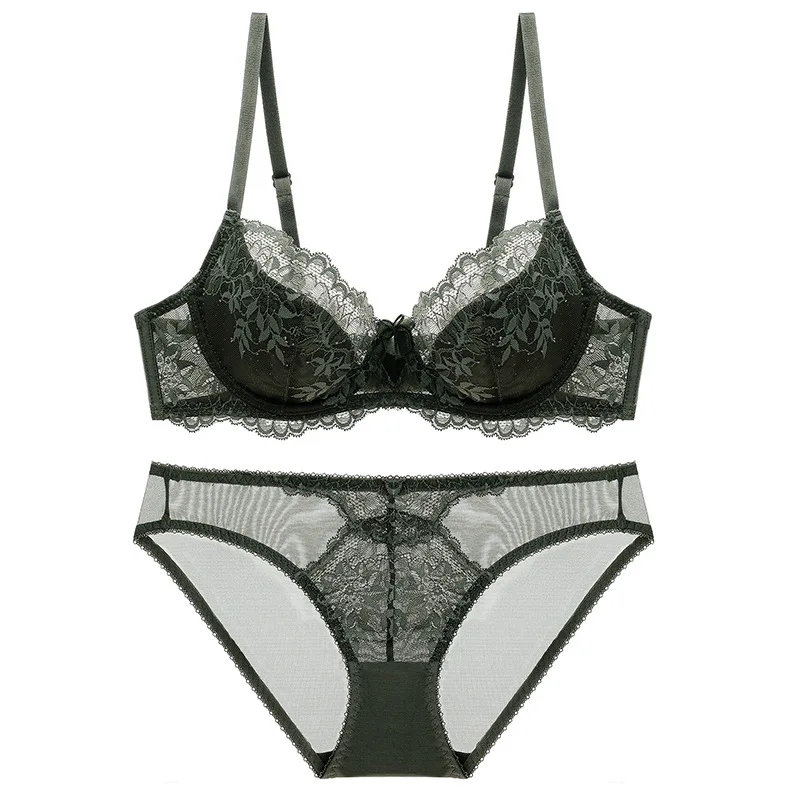 Новинка 2021, сексуальный сетчатый кружевной дышащий тонкий бюстгальтер с подкладкой и трусики, женское нижнее белье с эффектом пуш-ап, чашка A, B, C, D, E, 95D