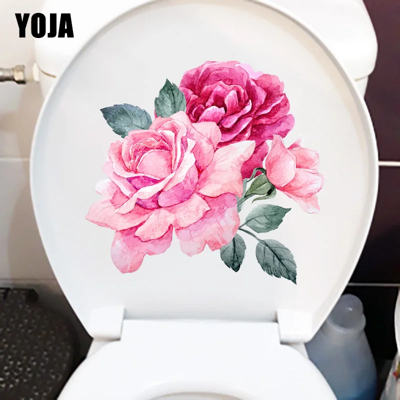YOJA 25,5 см 23,8 см изящный пион наклейки для ванной комнаты и туалета классические украшения стены дома T1-2513