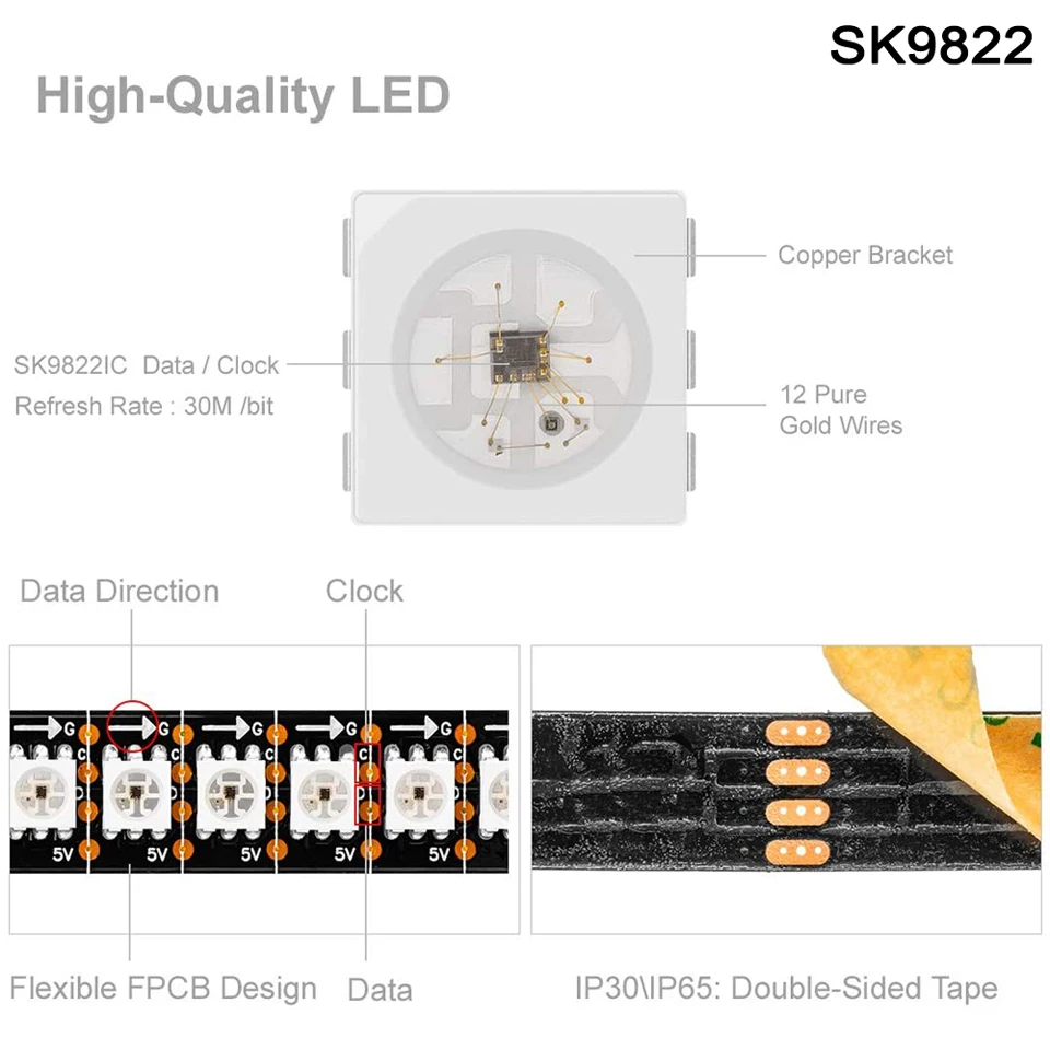 Страна: US Emitting Color: WS2812B Color: White PCB Length: 5m 30leds IP30 Доставка: Standard Shipping 03.04.2021