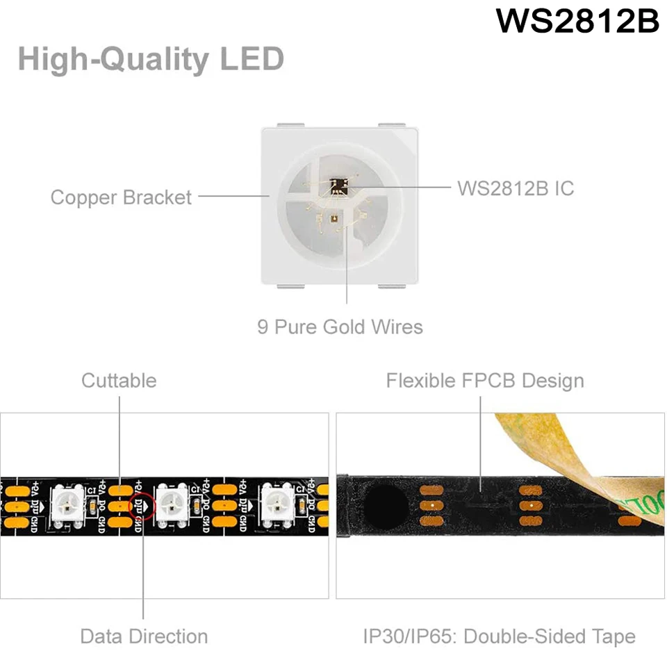 Светодиодная ленсветильник WS2812B, 5 В, 12 В, WS2811, RGB, WS2815, двойной сигнал, WS2812, Светодиодная лента s, индивидуально Адресуемая, 1 м, 5 м, 30 светодиодов, 60 светодиодов
