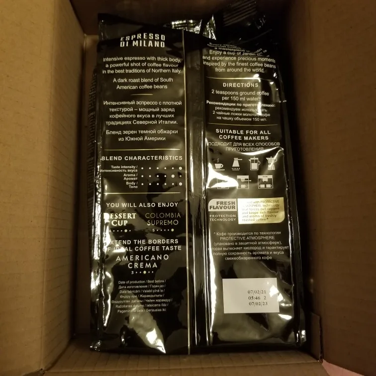 Отличный кофе. Пришел в Пермь за 4 дня. Срок изготовления 7.02.2021.