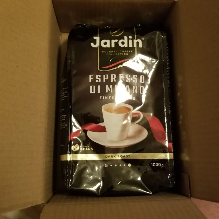 доставка менее двух суток от времени заказа в ближайшую от дома Пятерочку. Один из лучших сортов кофе Jardin. На момент покупки лучшее предложение цены, с учетом скидки Tmall. Рекомендую данный товар и продавца!