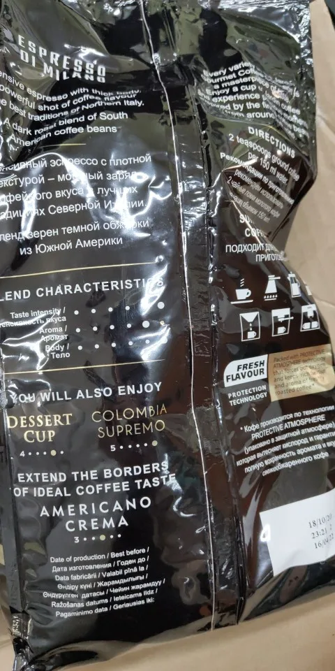попадается некоторое количество откровенно сгоревших зёрен, к сожалению. но, в целом, за такую цену - хороший вариант для кофейных напитков с молоком