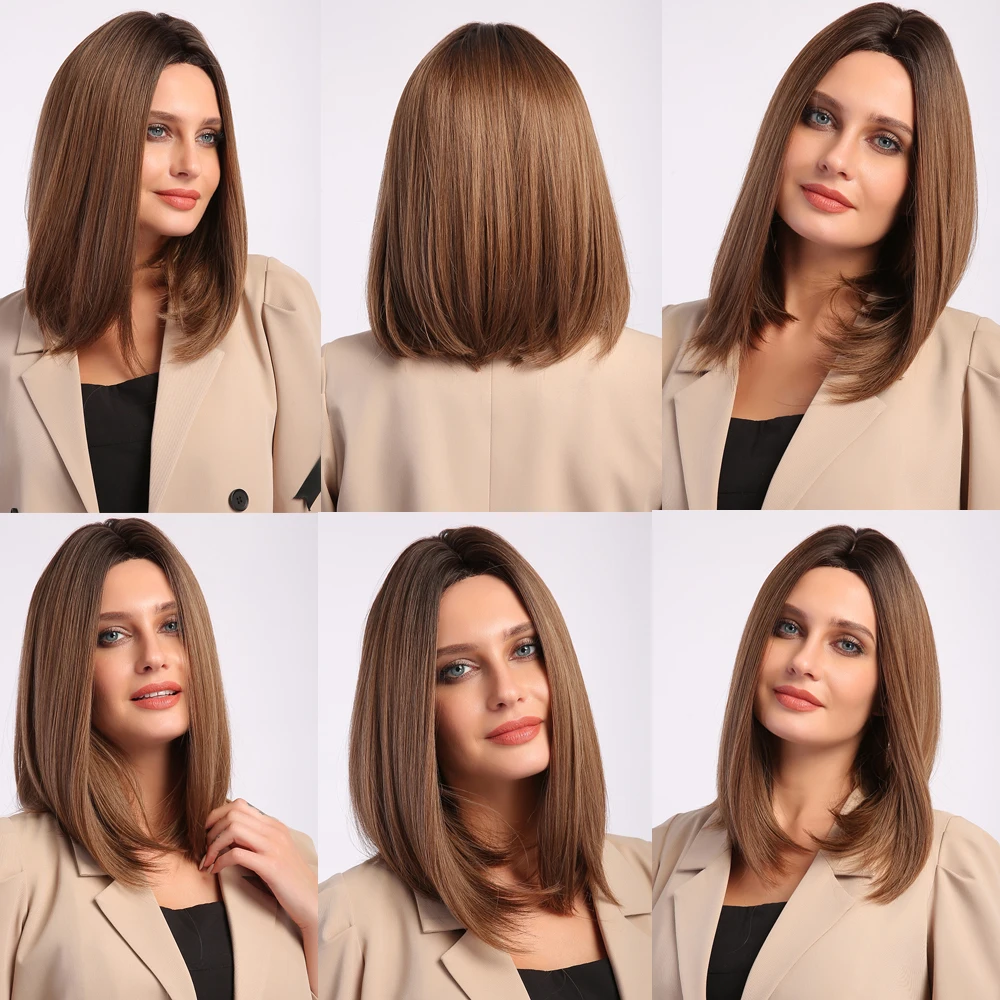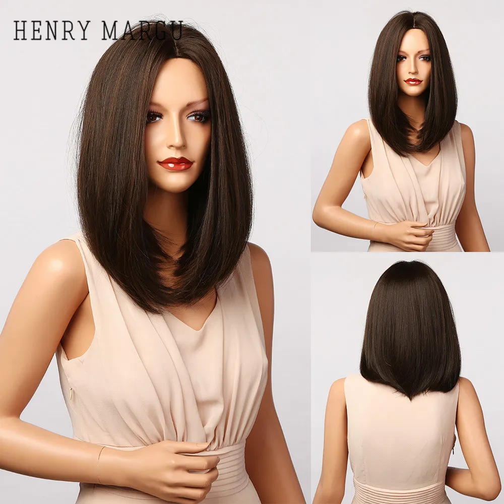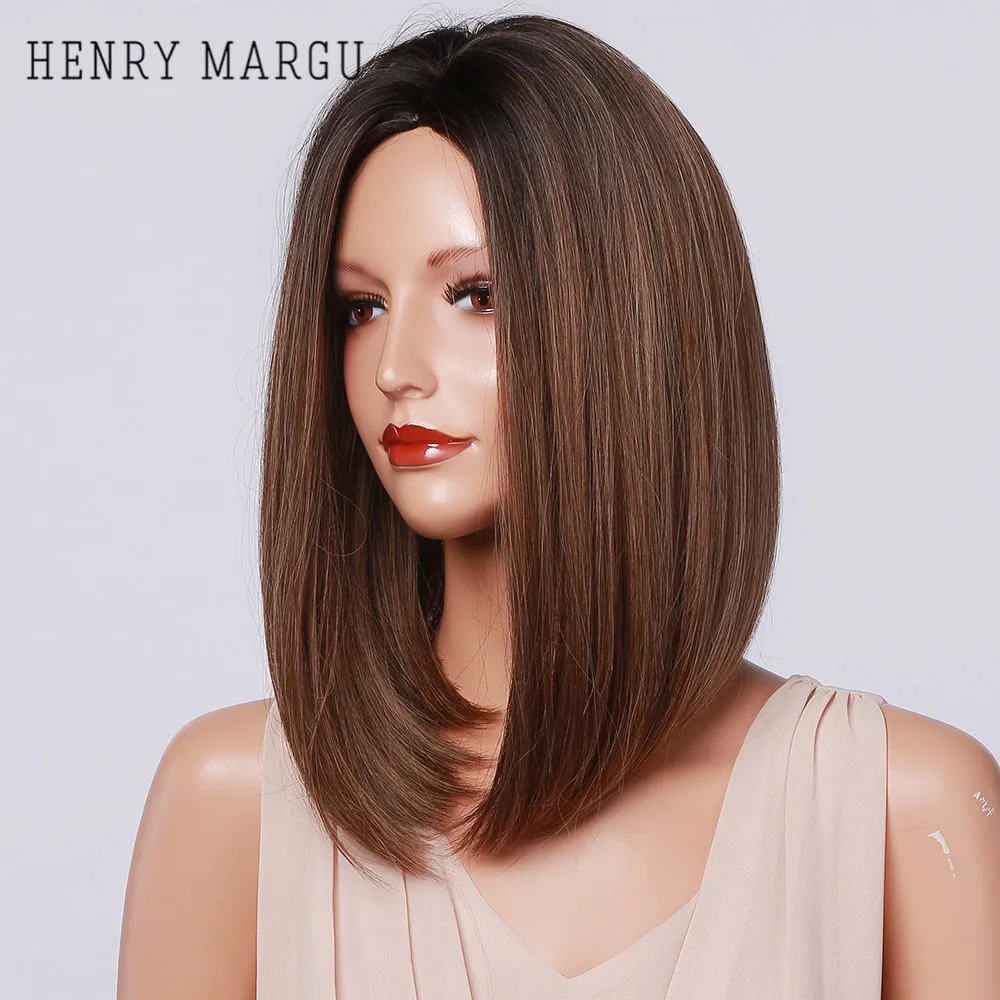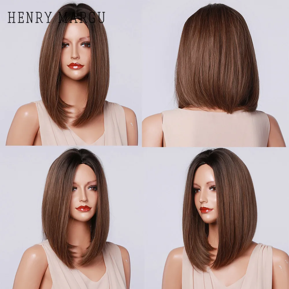 Синтетический парик с эффектом омбре Генри маргу Боб, прямой, коричневый, черный, натуральный короткий парик для женщин, парики для косплея средней части, термостойкие