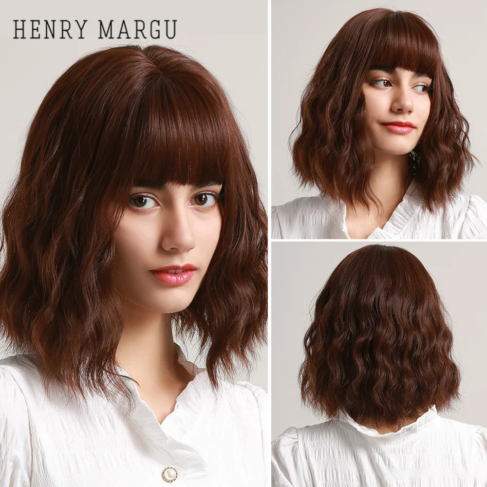 Парик для косплея Анри маргу Боба, коричневый, черный, Омбре, синтетический парик, натуральный короткий парик для женщин, средняя часть, термостойкие парики
