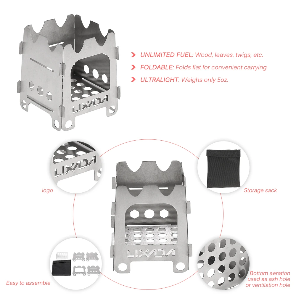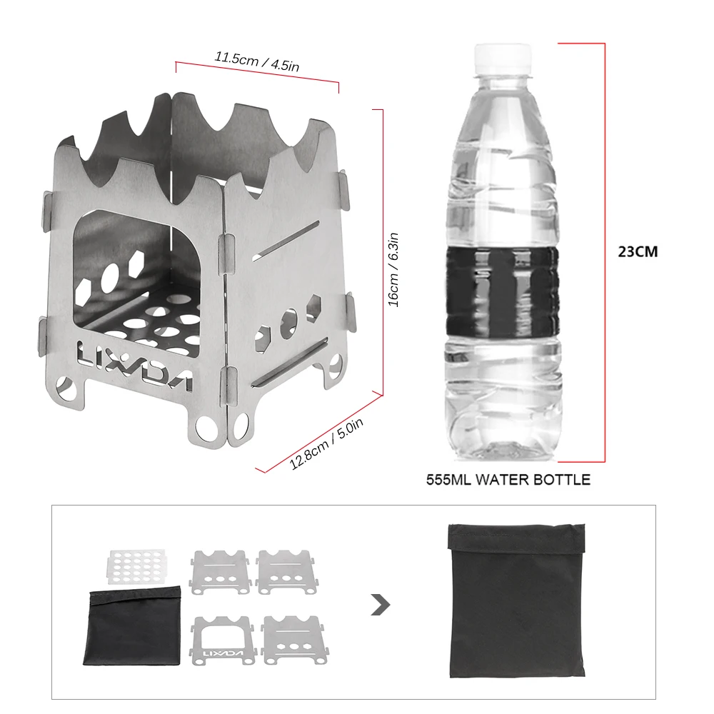 Уличная кемпинговая плита Lixada, портативная Сверхлегкая Складная дровяная и спиртовая плита из нержавеющей стали с поддоном для спирта, кемпинг