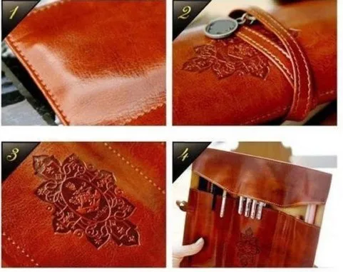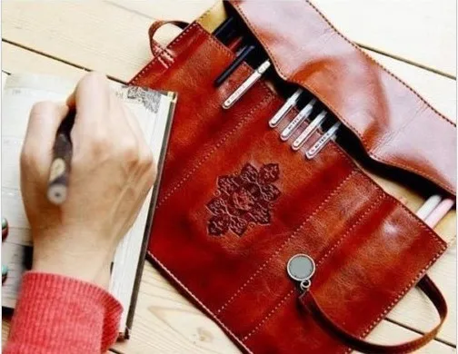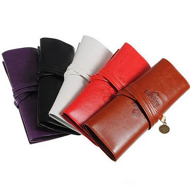 Чехол для карандашей Rollup из искусственной кожи, ретро-сумка для ...