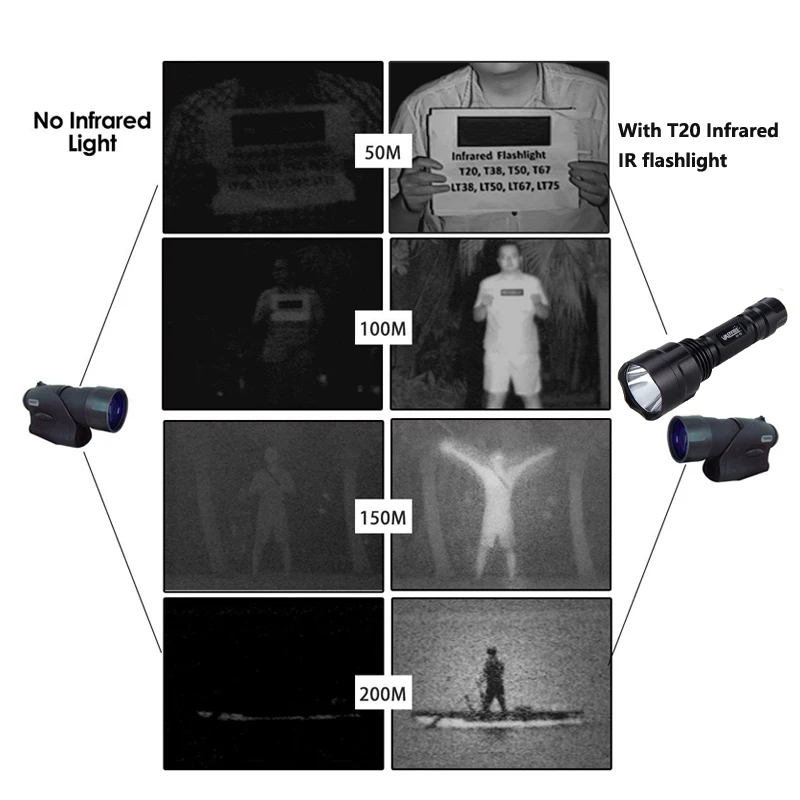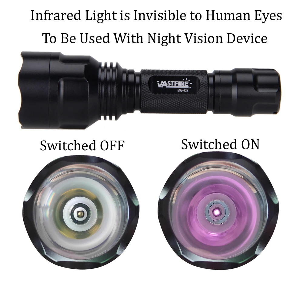940 нм светодиодный инфракрасный Излучение ИК лампа ночного видения фонарик Фонарь VASTFIRE IR-C8 Инфракрасный фонарик не является обычным фонариком с белым светодиодный для общего освещения. Обратите внимание, что: вы не увидите ни один светильник с вашими голыми глазами (только маленький и слабый красный свет на светодиодный, чтобы показать вам, что фонарь включен) -Невидимый ИК-светильник: излучает инфракрасный светильник с длиной волны 940nm, подходит для использования с ночным видением, NVS, NVG DIY, камеры телефонов, монокулярных, очков и камеры, которые не блокируют инфракрасный светильник -Точечный светильник до 150 ярдов, Точечный светильник до 100 ярдов с добавлением к GEN 1 NVGs при съемке coyotes fox Hog Wild Pig Varmint Predator Deer -Портативный ИК-осветитель с использованием ночного видения для охоты -Фонарик ночного видения для охоты -Идеальный усилитель подсветки для вашего монокуляра или устройства ночного видения -Изготовлен из авиационного алюминия и оснащен стеклянным объективом для большей четкости -25,4 мм диаметр корпуса -С уплотнительным кольцом, может использоваться во влажный дождливый день Материал: алюминиевый сплав Длина: 146 мм Диаметр головки: 44 мм Диаметр хвоста: 25 мм Рабочее напряжение: 4,2 V Объектив: выпуклая линза Цвет: черный Батарея: 1 кисть для маскирующих средств 18650 3,7 v или Батарея