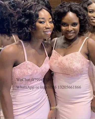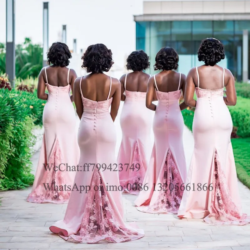 Кружевное платье-Русалка для подружек невесты, розовое длинное платье на бретелях-спагетти с V-образным вырезом, свадебное праздничное платье для женщин, 2021
