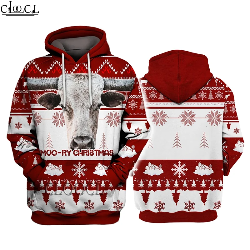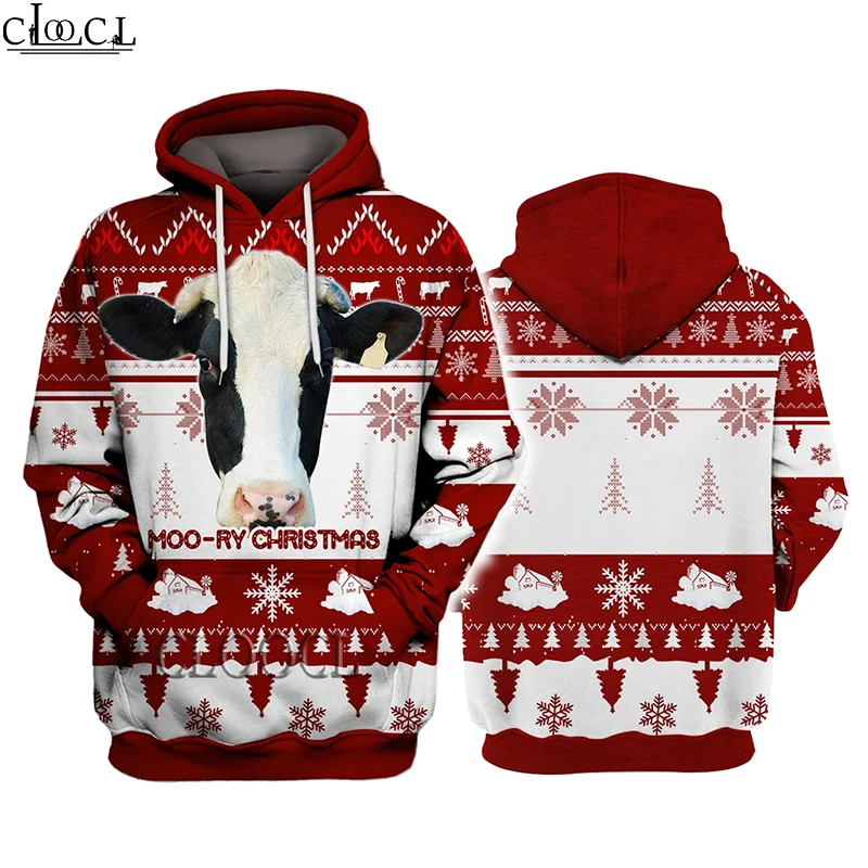 Рождественские 3D толстовки HX Holstein с рисунком крупного рогатого скота Moo-Ry, пуловер для мужчин и женщин, забавные свитшоты, рождественские топы, Прямая поставка