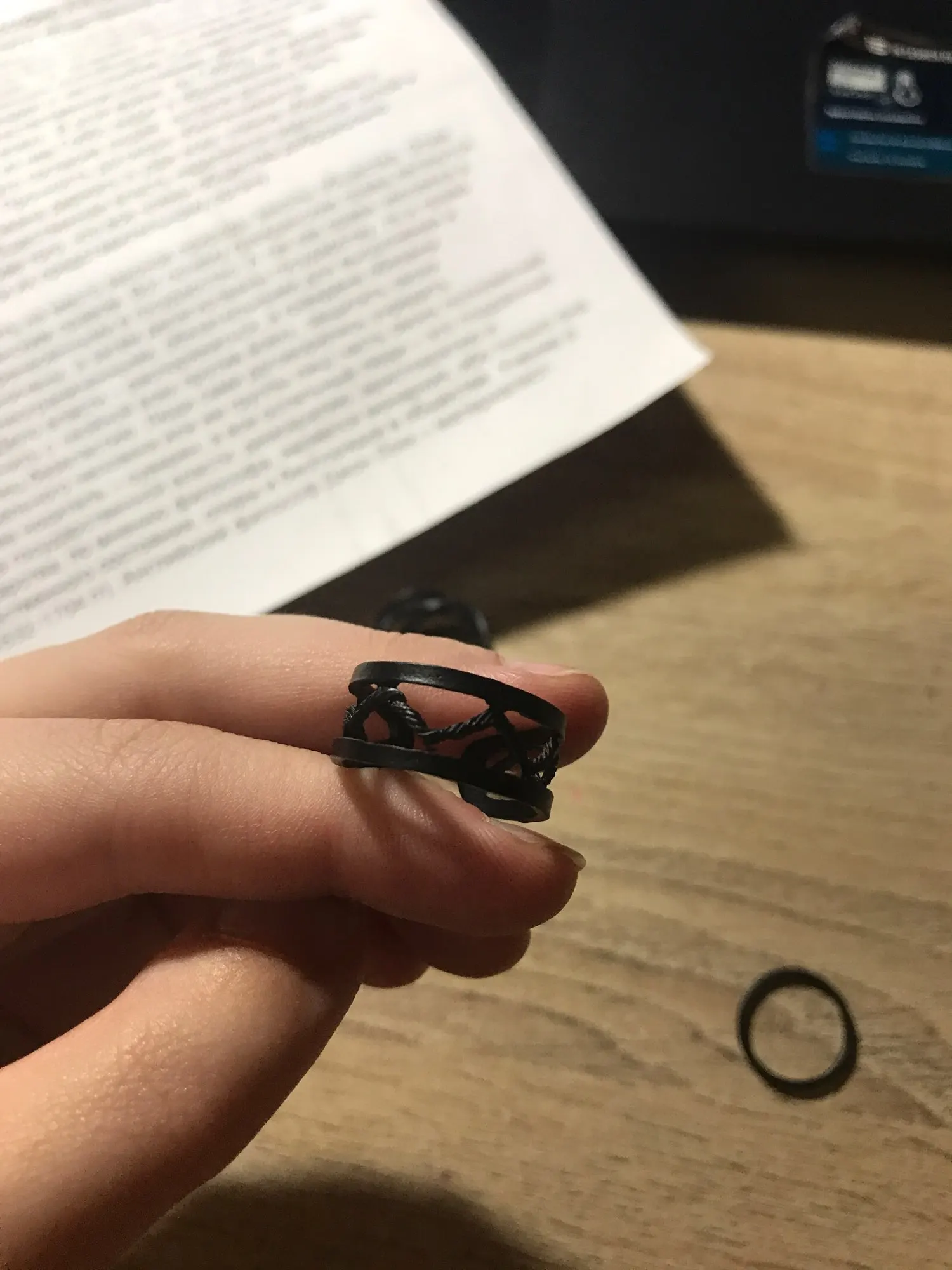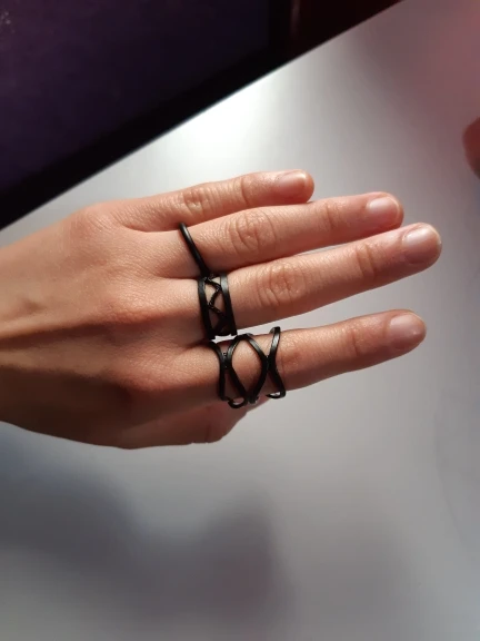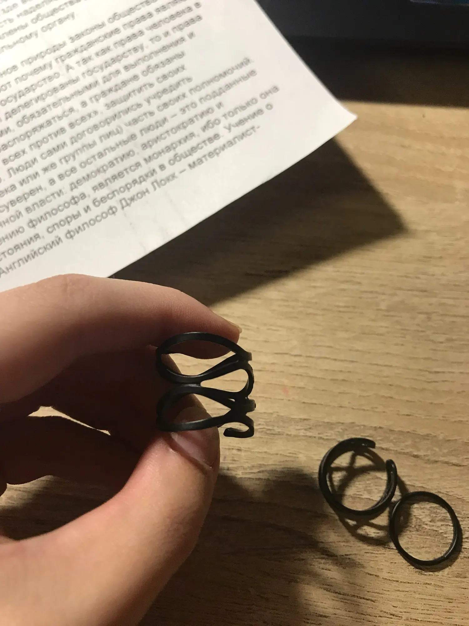 Колечки милые, сидят хорошо. По качеству: сделаны оооочень просто, прям максимально. Видно шовчики, на длинном ещё и торчат кусочки материала (его сразу отложила). В целом я осталась довольна потому что сидят они хорошо, в носке удобные. По цене и качество, но даже за такие деньги они отличные: не ломаются, среднее спокойно подстраивается под палец. 4 звёзды за то, что длинное кольцо сделано ну совсем грустно (точки, торчащие концы, следы). Если по двум другим не скажешь, что это дешёвка, то здесь сразу видно.