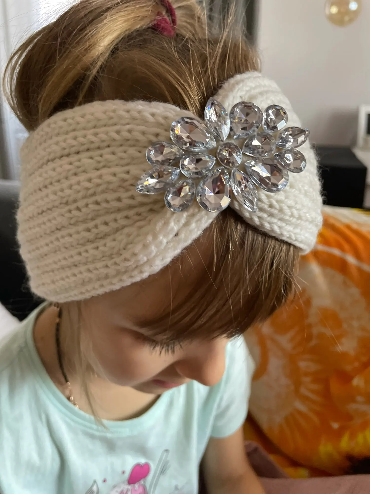 Зимняя женская регулируемая повязка на голову с прозрачными кристаллами и цветами, вязаная крючком повязка на голову, обогреватель для ушей, аксессуары