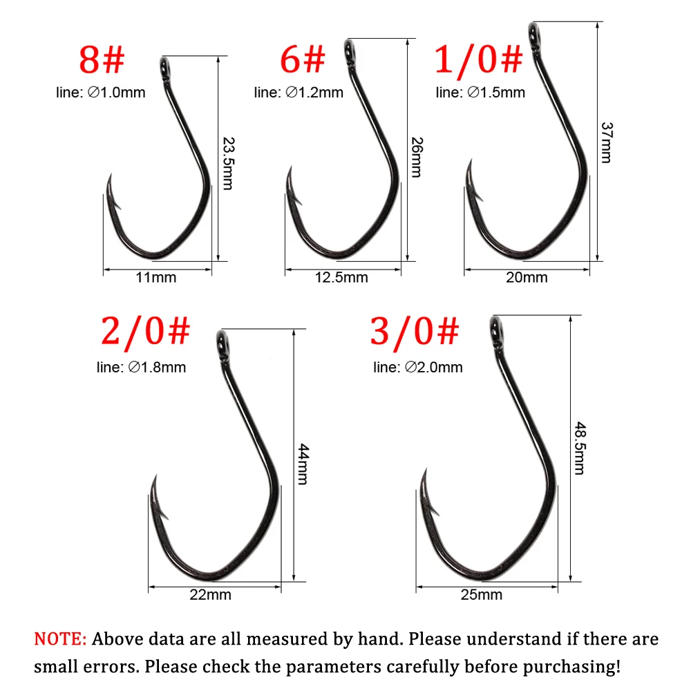 20 шт. 8 6 1/0 2/0 3/0 черный никель Высокоуглеродистая Сталь Крючок Для Сома зазубристые морские рыболовные крючки