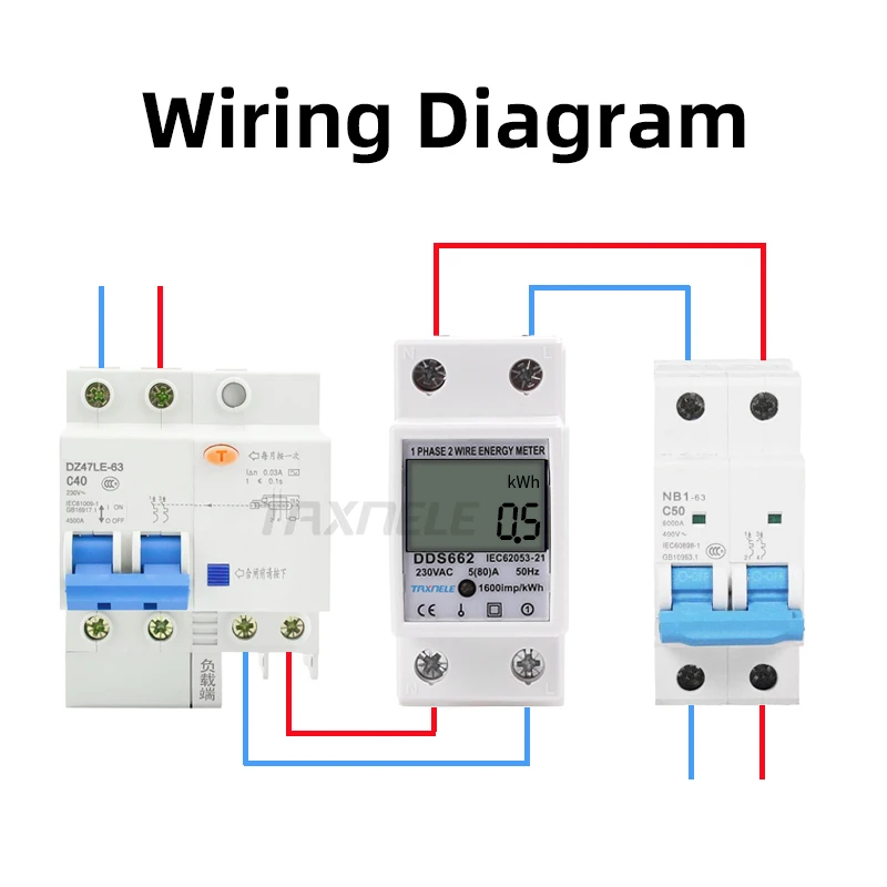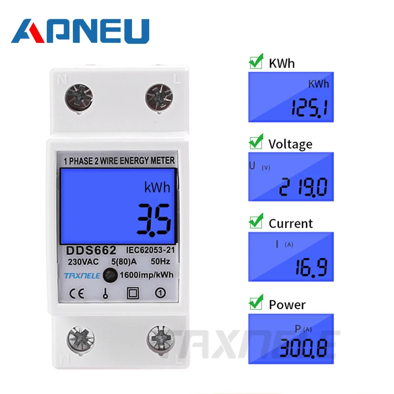 Однофазный двухпроводной цифровой ЖК-дисплей, ваттметр, потребляемая мощность, Электрический измеритель кВтч, переменный ток 230 В 50 Гц, Электрический Din-рейка