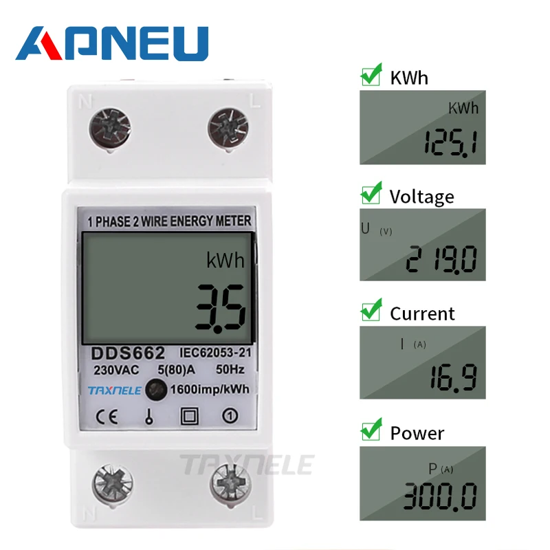 Особенности: 1. Крепление на DIN-рейку 35 мм соответствует стандартам DIN EN50022. 2. Ширина полюса 17,5 мм соответствует стандартам DIN43880. 3. Цифровой ЖК-дисплей с подсветкой, без кнопки сброса, во избежание манипуляций с данными людьми. 4. Он отображает энергию, напряжение, ток, мощность. 5. Красный светодиодный энергетический импульсный сигнал. 6. Встроенная Торцевая крышка обеспечивает безопасность источника питания. 7. С особенностями хорошей надежности, небольшого размера светильник кого веса, красивого внешнего вида и легкой установки. 8. Использование микроэлектроники и технологии цифровой обработки для измерения электрической энергии, точности и надежности. 9. Крупномасштабные интегральные схемы и точная технология SMT, с хорошим сопротивлением электромагнитным помехам и стабильной производительностью. Спецификация: Материал: пластик Модель:DDS662 Точность: первый класс Опорное напряжение: 220 В/230 В 50/60 Гц Опорный ток (макс. Ток): 5(80) а Изоляционное свойство: 1 мин 4 кВ переменное напряжение, 1,2/50 мкс 6 кВ импульсное напряжение Дисплей: ЖК-подсветка/ЖК-дисплей Установка: DIN-рейка 35 мм Метод проводки: вверх-выход и вниз-в/вверх-вверх и вниз-выход Мощность: 17000 Вт Температура окружающей среды: -20C ~ + 50C Ширина полюса: 17,5 мм Функции: отображение электричества, напряжения, тока, частоты, коэффициентов мощности Размер посылка: ок. 8,6*4,2*7,2 см/3,4*1,7 * 2.8in Напряжение: 200-250 В переменного тока Ток: 0,1-80А Энергия: 0,1-99999,9 кВтч Мощность: 0,1-17000 Вт