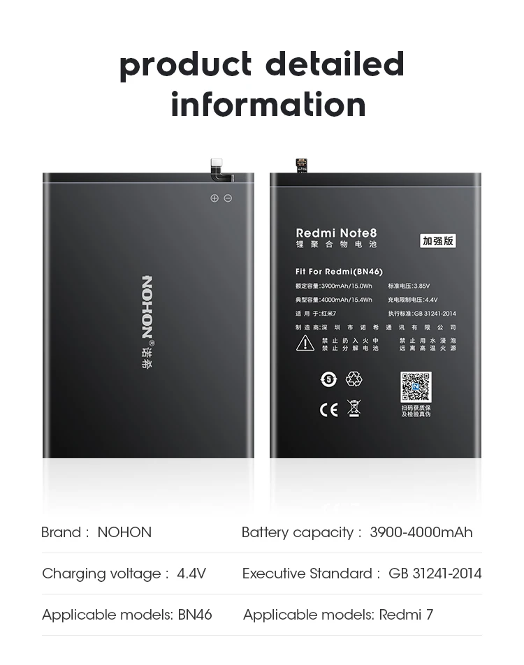 Nohon МодельNOHON BN46 BP41 BM4E BM47 BM4A BN30 BN34 BN35 BN40 BN42 BN44 BM46 BM45 BN4A BN41 BN43 BN45 Battery