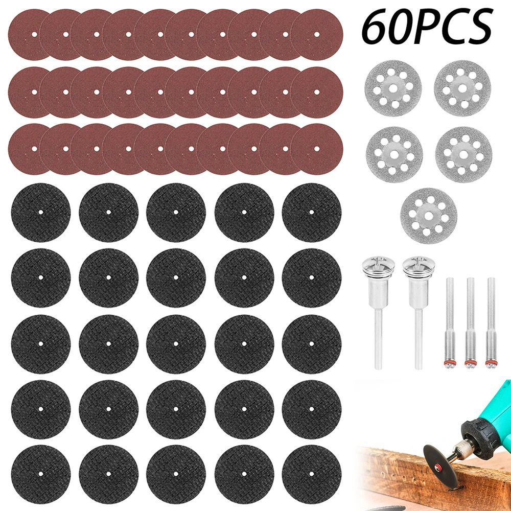 Алмазные режущие диски 60 шт., шлифовальный круг, лезвие для циркулярной пилы, для мини дрели Dremel по дереву и металлу, аксессуары для роторного инструмента