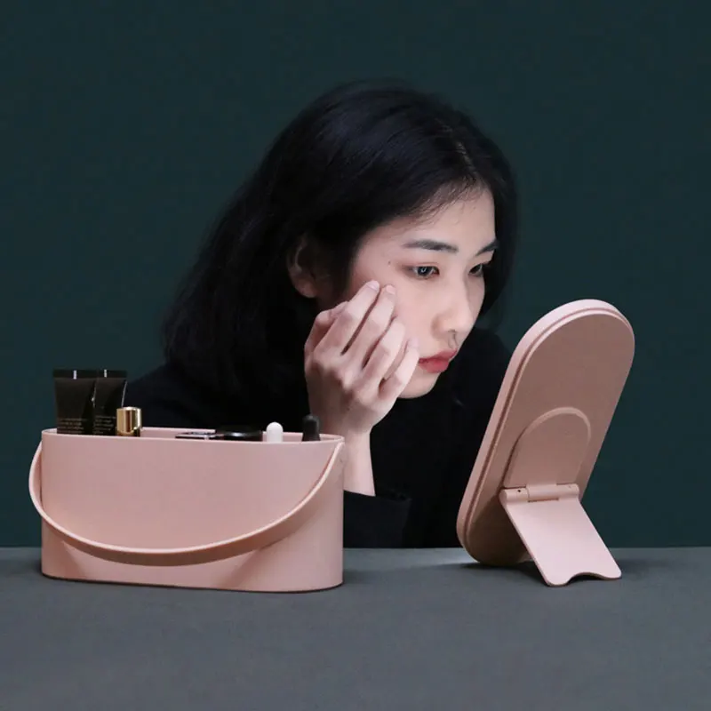 Портативный органайзер для макияжа коробка для ухода за кожей органический для макияжа с зеркалом светодиодный светильник-кольцо для путешествий NIN668