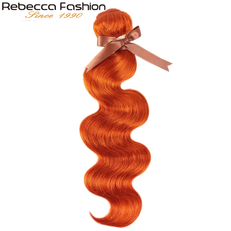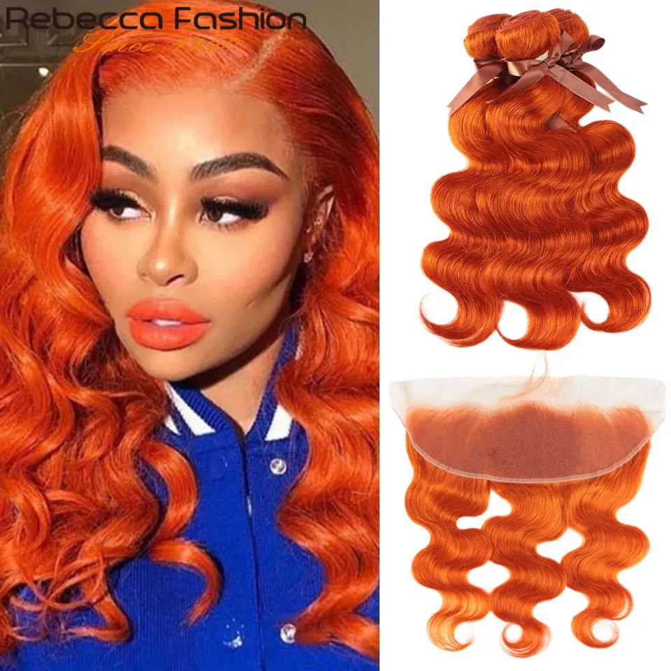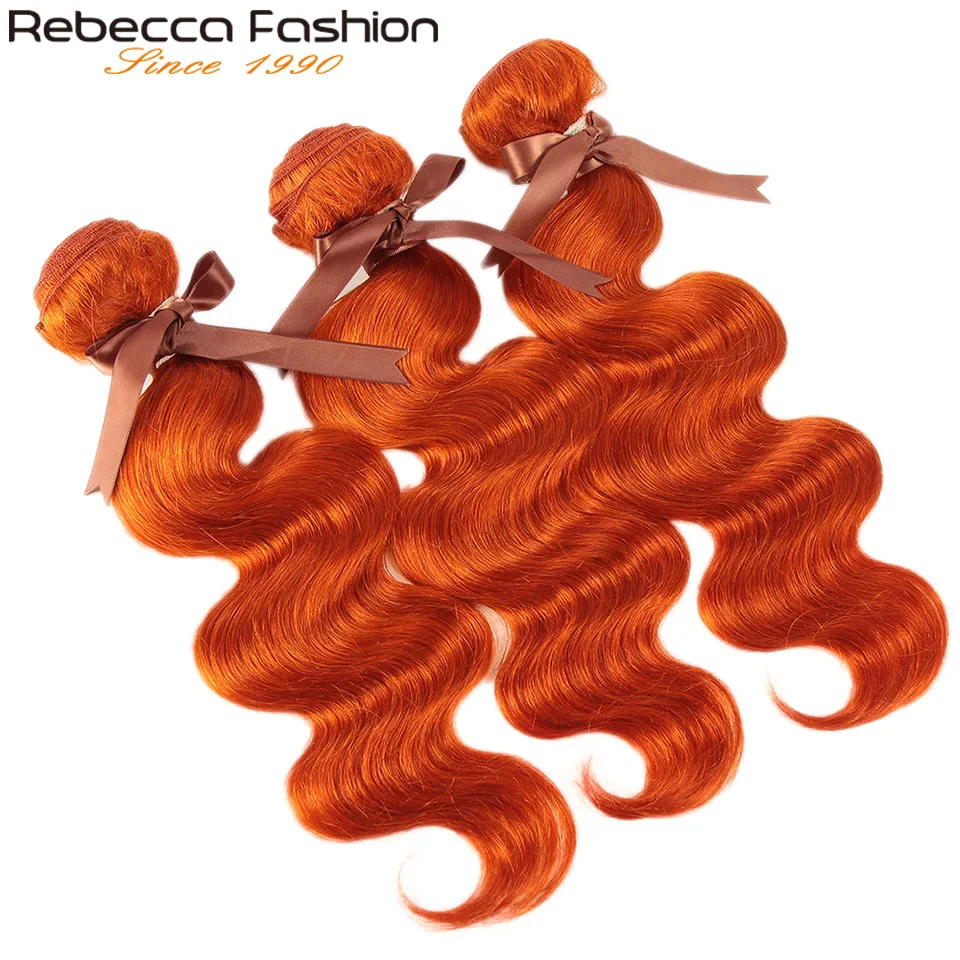 Волнистые волосы Rebecca Orange, 3, 4 пучка с застежкой, бразильские пряди волос, Цветные Волнистые пряди с фронтальной 8-28