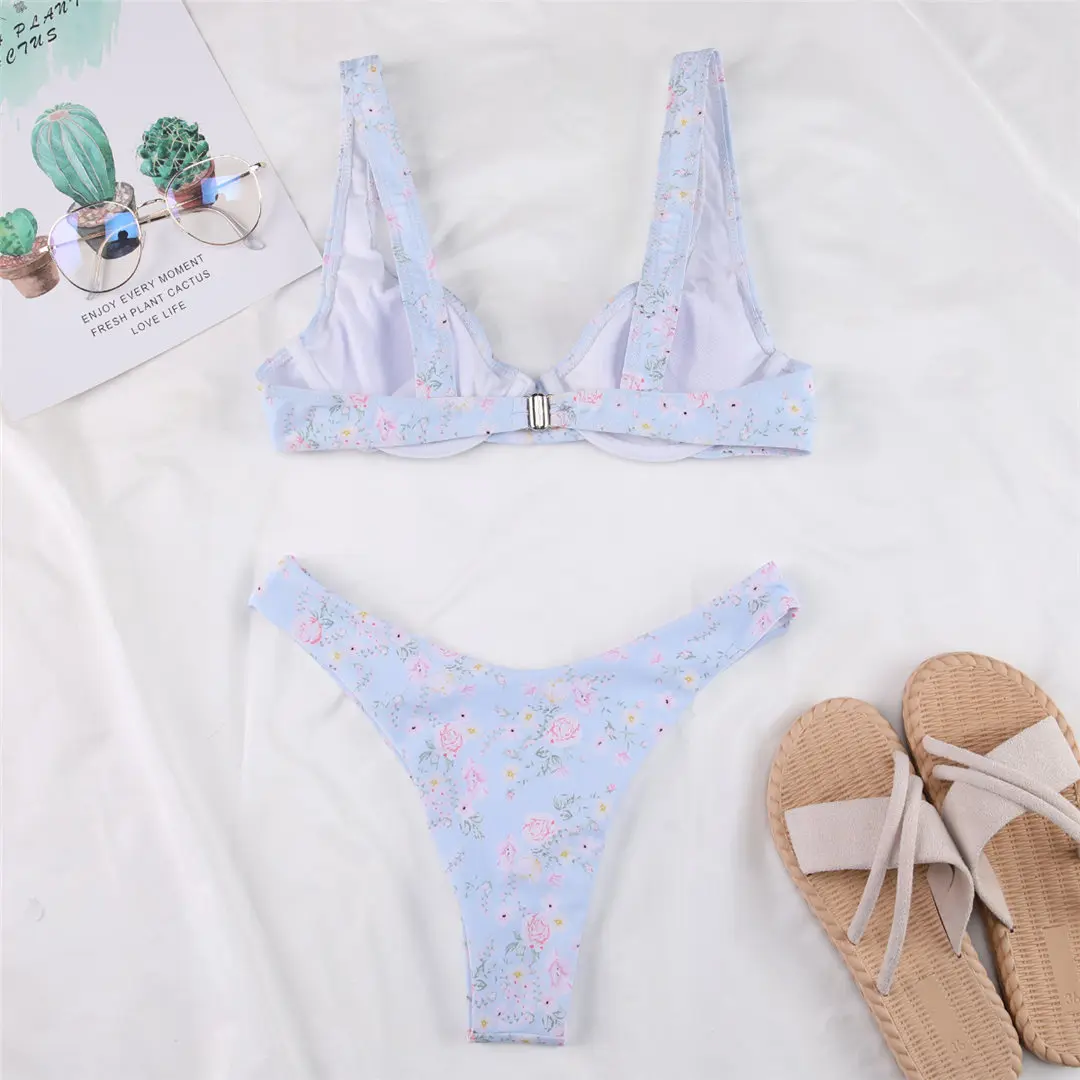 Цветочное бикини-бандо, женская одежда для плавания, женский купаль...