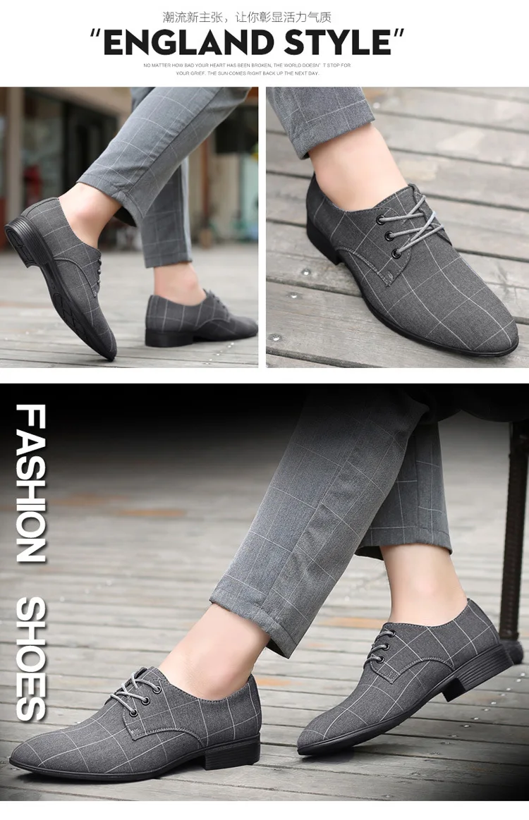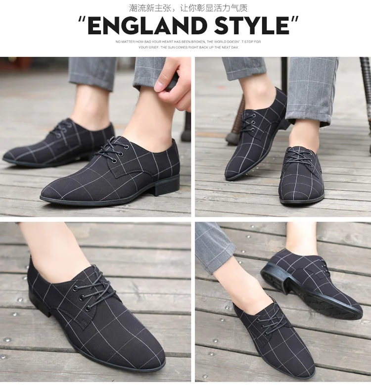 Мужские классические деловые туфли; Мужские модельные туфли; Модные тканевые формальные свадебные туфли с острым носком на шнуровке; Мужские черные туфли-Дерби в клетку