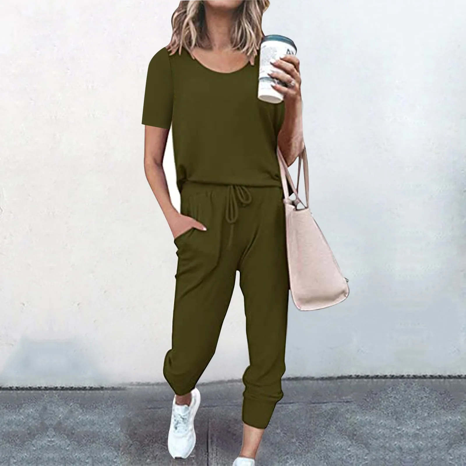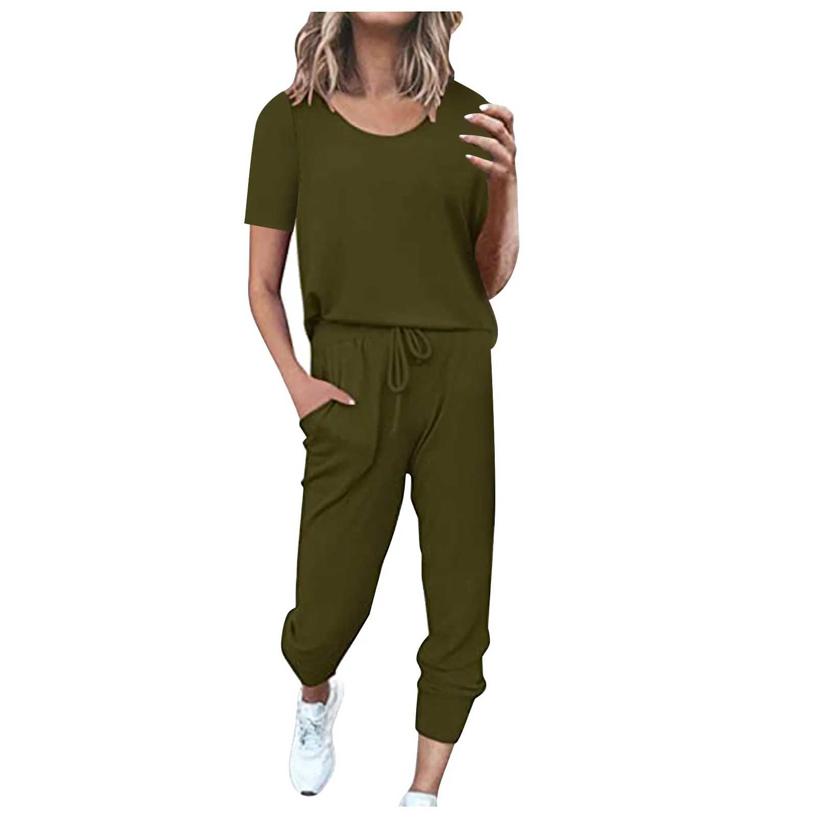 Осенне-зимний новый комплект из двух предметов женская повседневная домашняя одежда для сна однотонный костюм с коротким рукавом для отдыха с карманами домашние спортивные брюки наборы