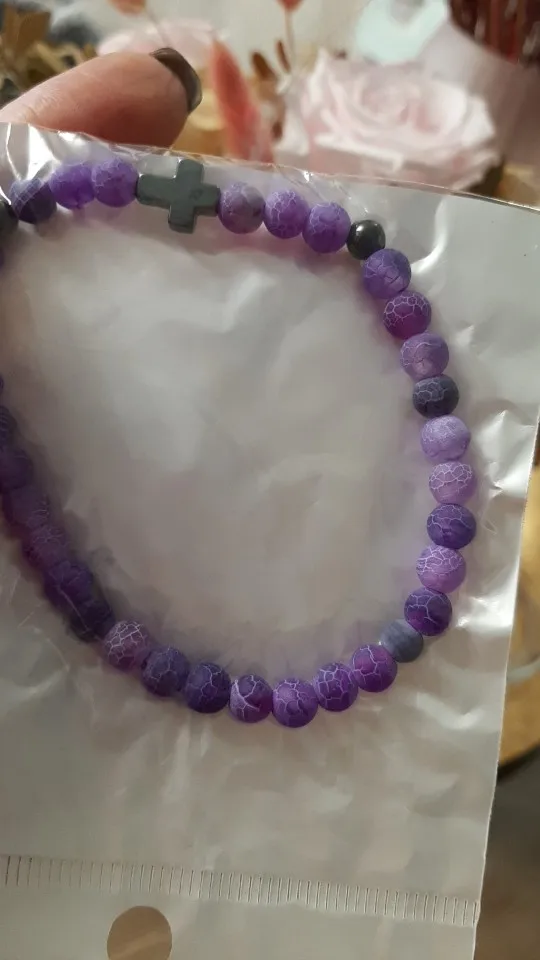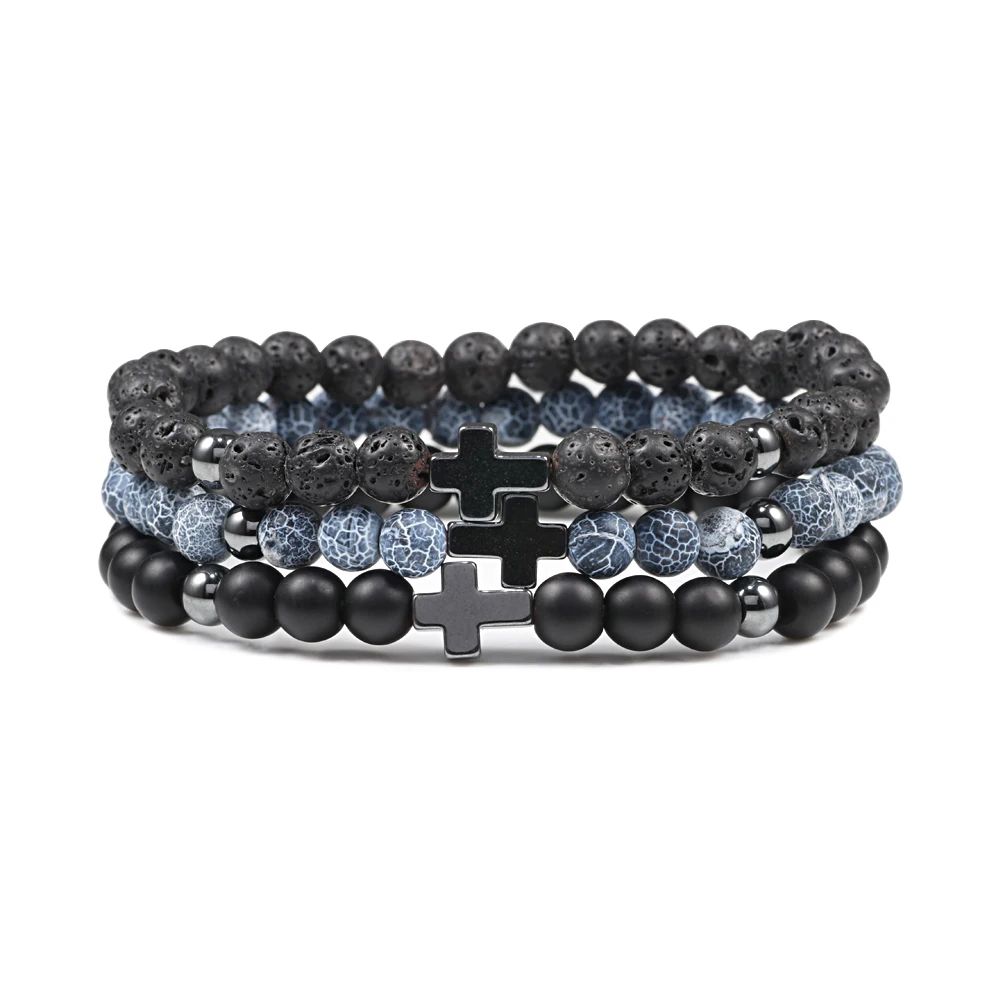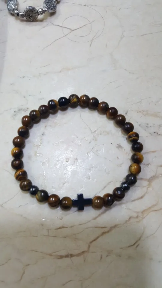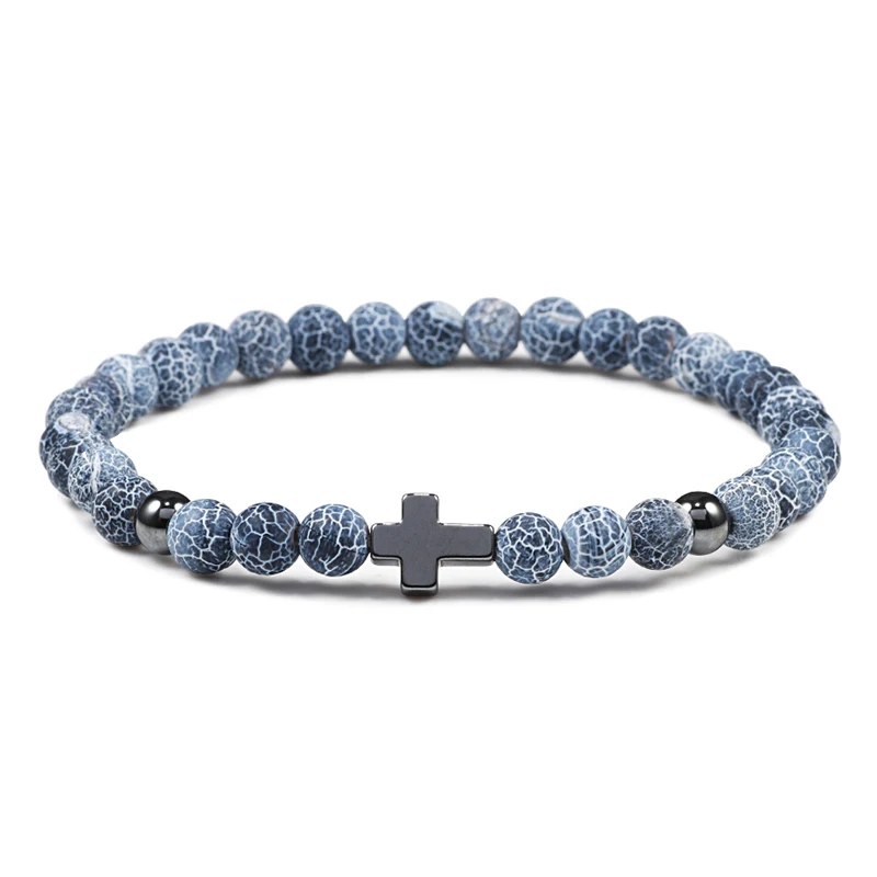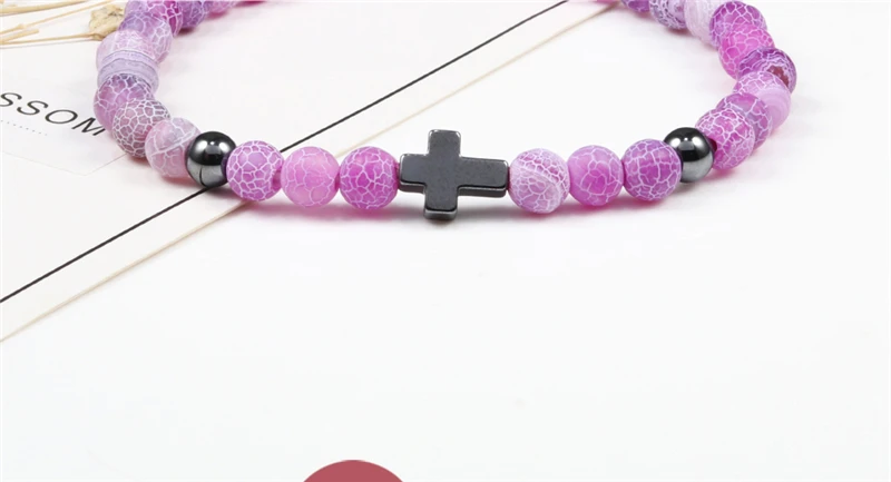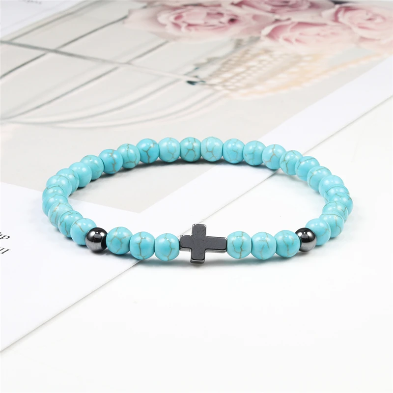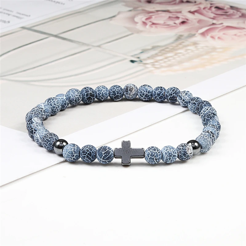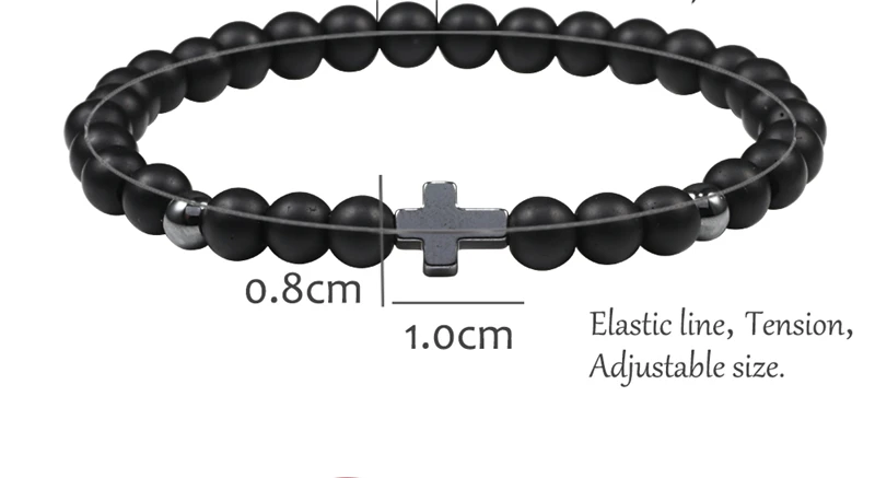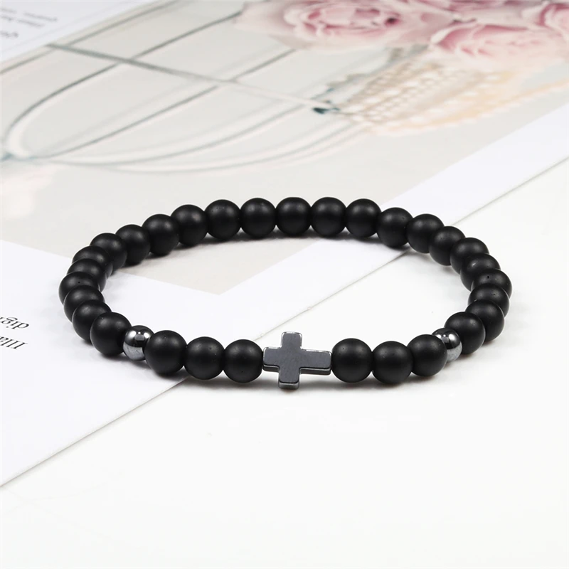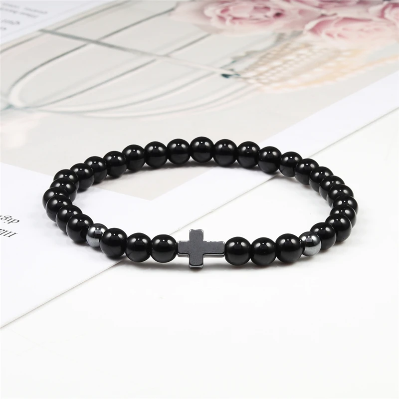 Браслет из натурального камня для мужчин и женщин, эластичный браслет с бусинами из гематита с крестом Иисуса, молитвенные браслеты, четки для йоги, Подарочная бижутерия, 6 мм