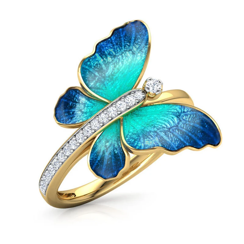 Кольца с бабочкой для женщин, модные блестящие кольца с микрозакрепкой, ювелирные изделия
