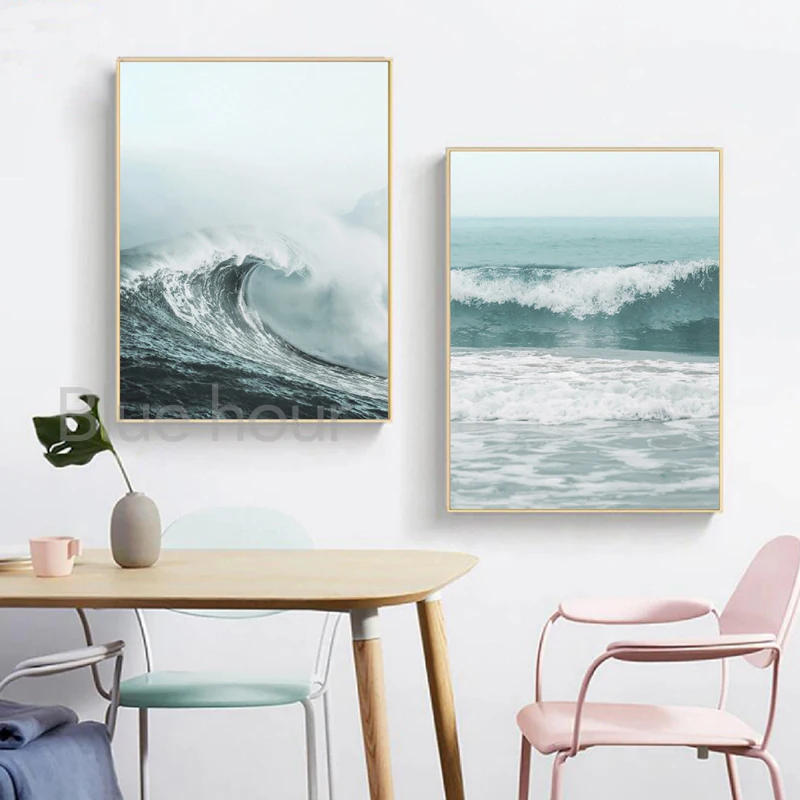 Плакаты на холсте, с изображением волн и гор, для гостиной