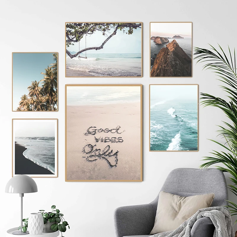 Пляжный Пейзаж фотография холст плакат Лето океан Пальма настенное ...