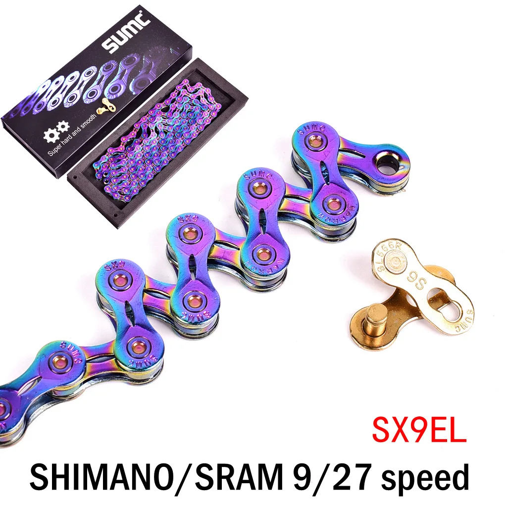 Цепь SXEL для горного велосипеда, 9, 10, 11, 12 Скоростей, цепь цветов радуги, 116 л