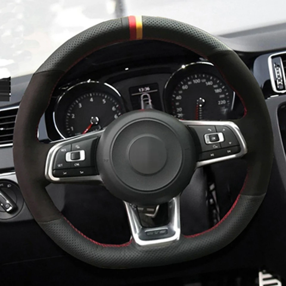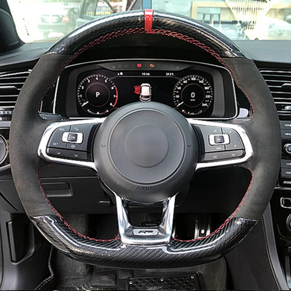 DIY ручной работы из углеродного волокна Черная замша чехол рулевого колеса автомобиля для Volkswagen Golf 7 GTI R MK7 поло Scirocco 2015 2016