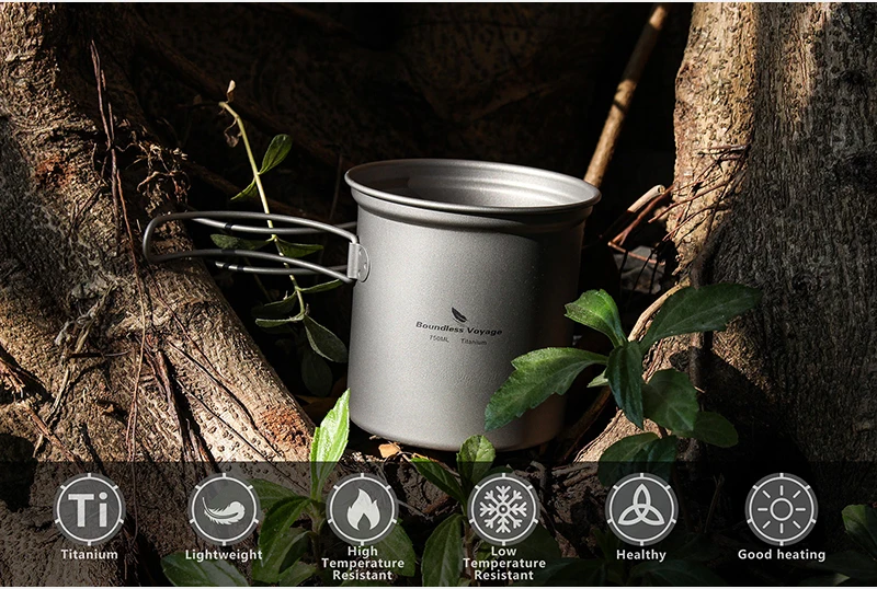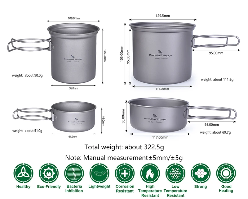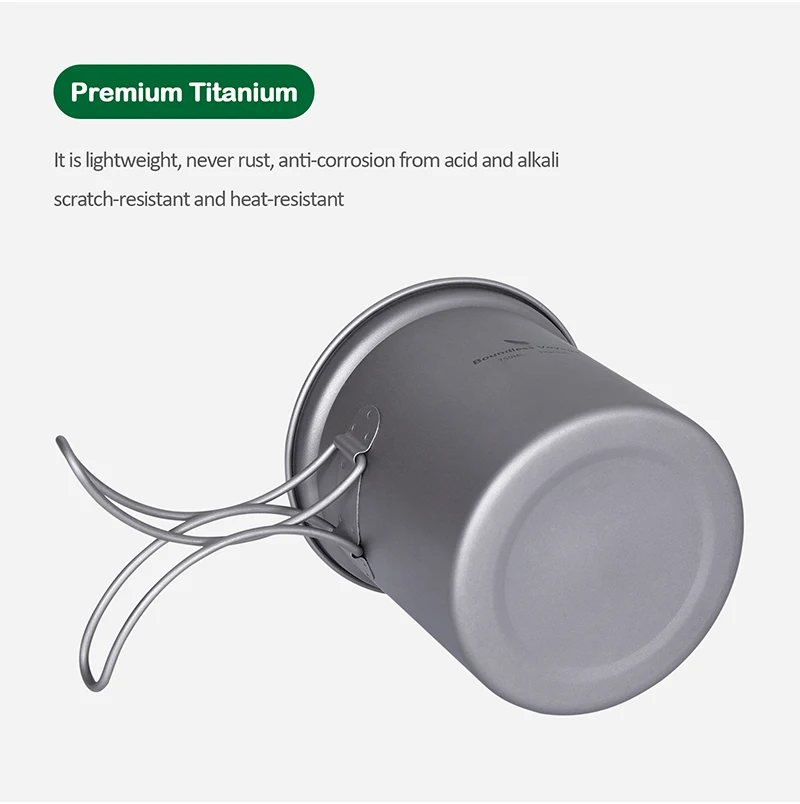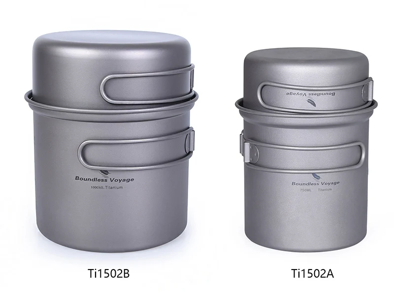 Безграничный набор кастрюль из титана для путешествий, походная посуда, легкая чаша для приготовления пищи с складной ручкой для 1-2 человек