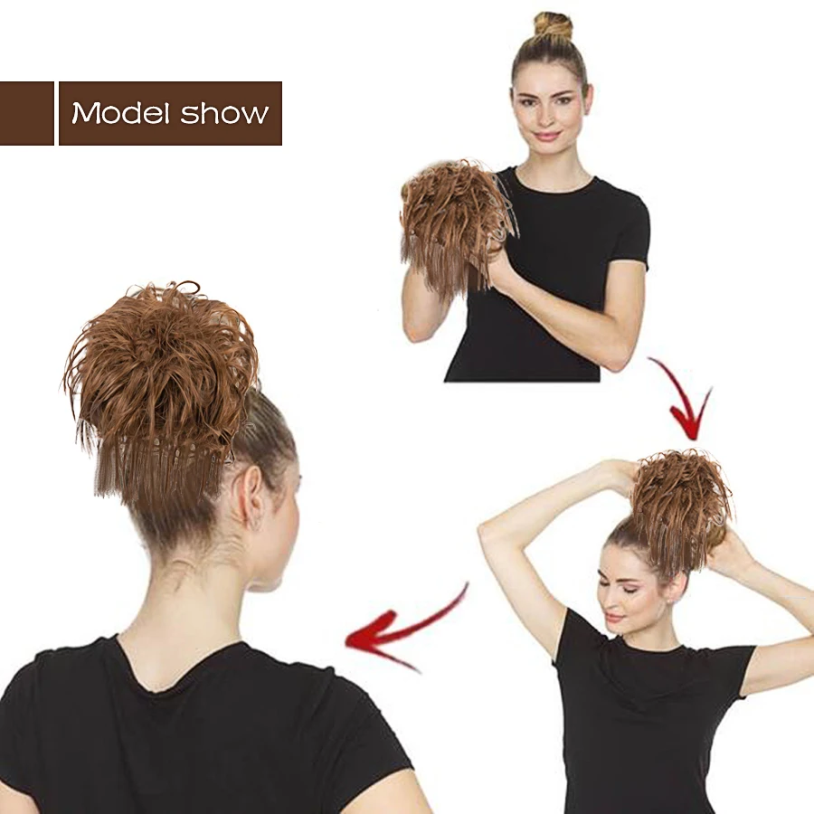 Care Instruction:(1) Wash in clod or warm water(2) Add a dash of Shampoo and wash gently(3) Rinse thoroughly in cold water(4) Do not brush when wet allow wig to drip fry(5) Brush wig into desired style after it is completely dry(6) Do not use curling irons,blow dryers,hot styling instruments or under sunshine- Material:100% High Quality Synthetic Fiber (looks natural like human hair)- Color:As Picture Shown (May Vary By Monitor)- Clip In/On Hair Buns,Easy-to-use design- Can be Restyled or Shorn as You Like. Can be Permed, and Washed- Transforming your look in seconds, provides secure and comfortable attachment for all day wear